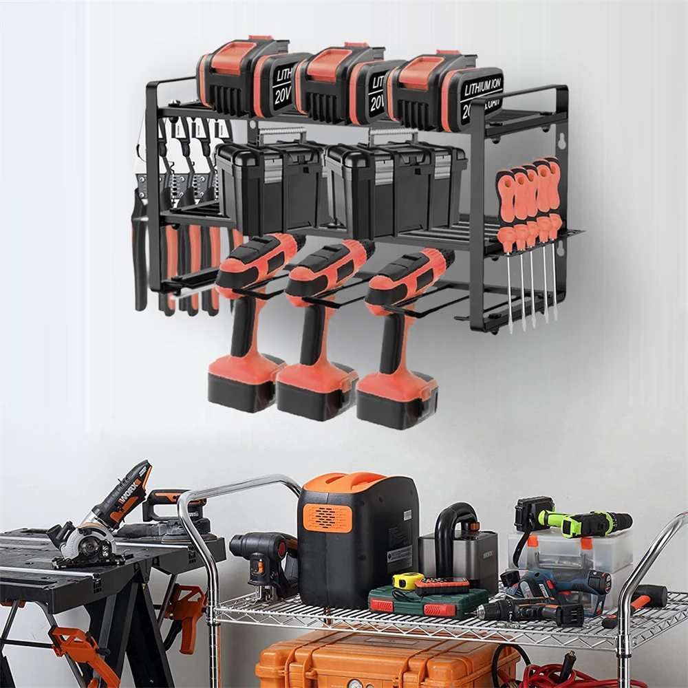 3-Layers Power Tool Organizer Wall Mount Electric Drill Tool Holder Shelf Garage Tool Organizer and Storage Utility Rack