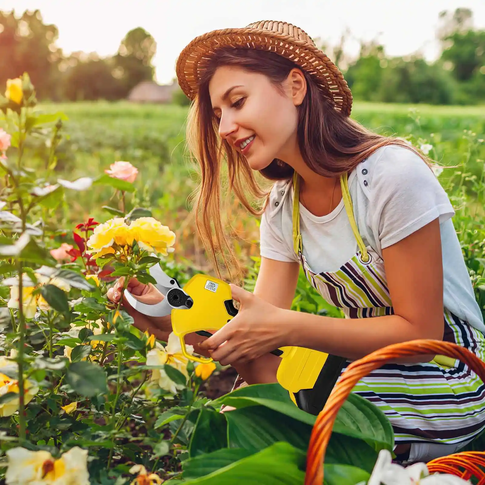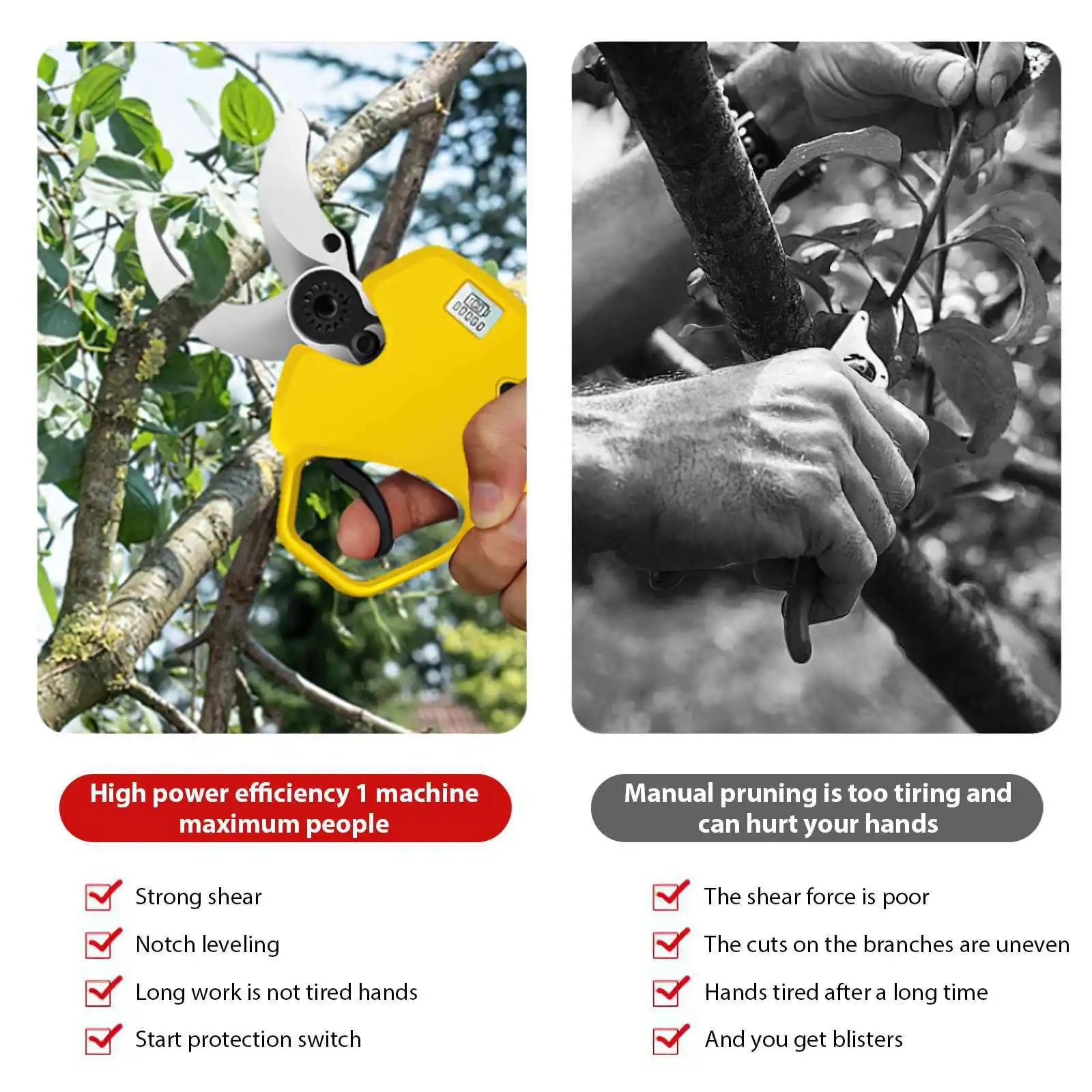 It can be used in various gardens, parks, farms, large ranches, orchards, greenhouses, etc. Its efficiency is 8 to 10 times higher than that of manual scissors.