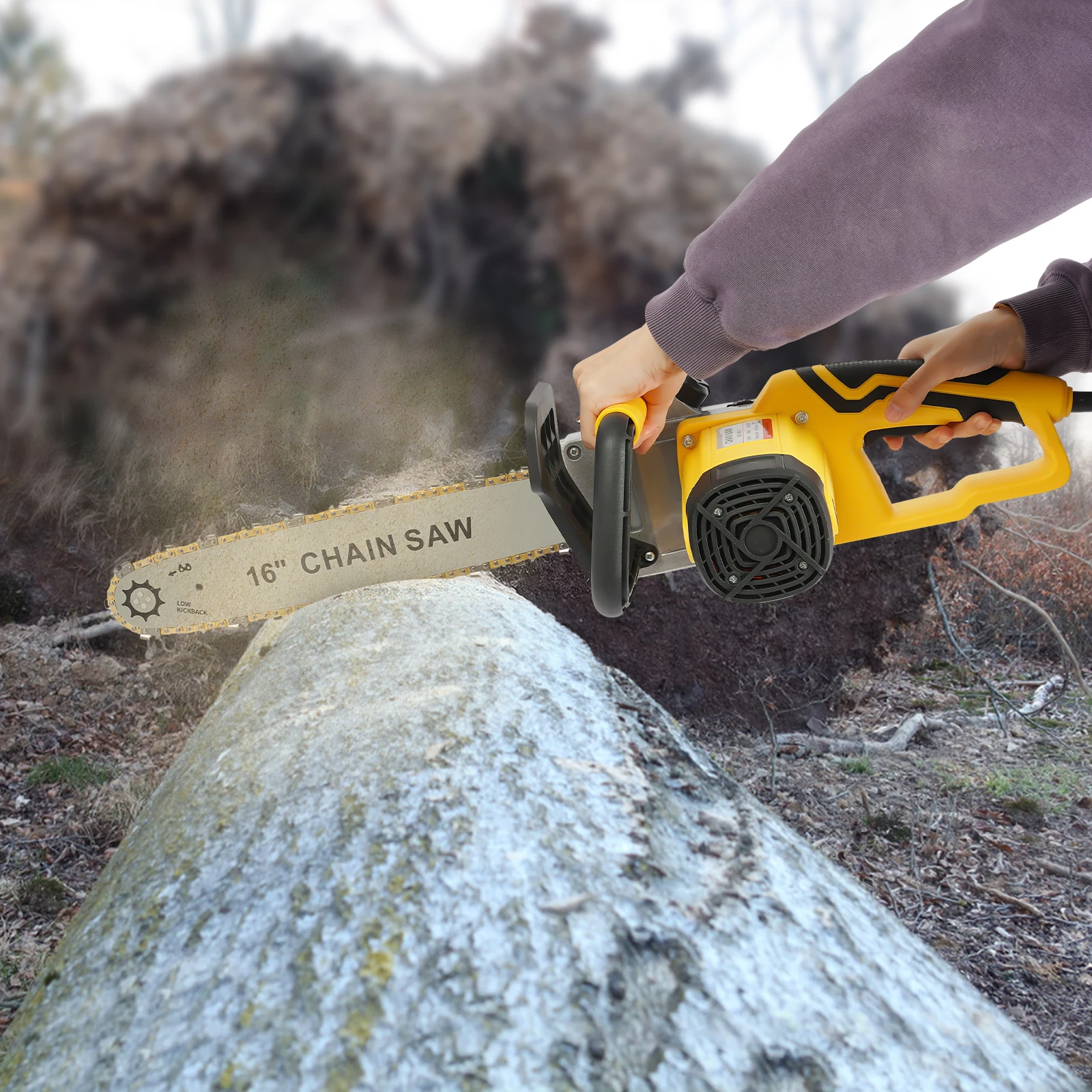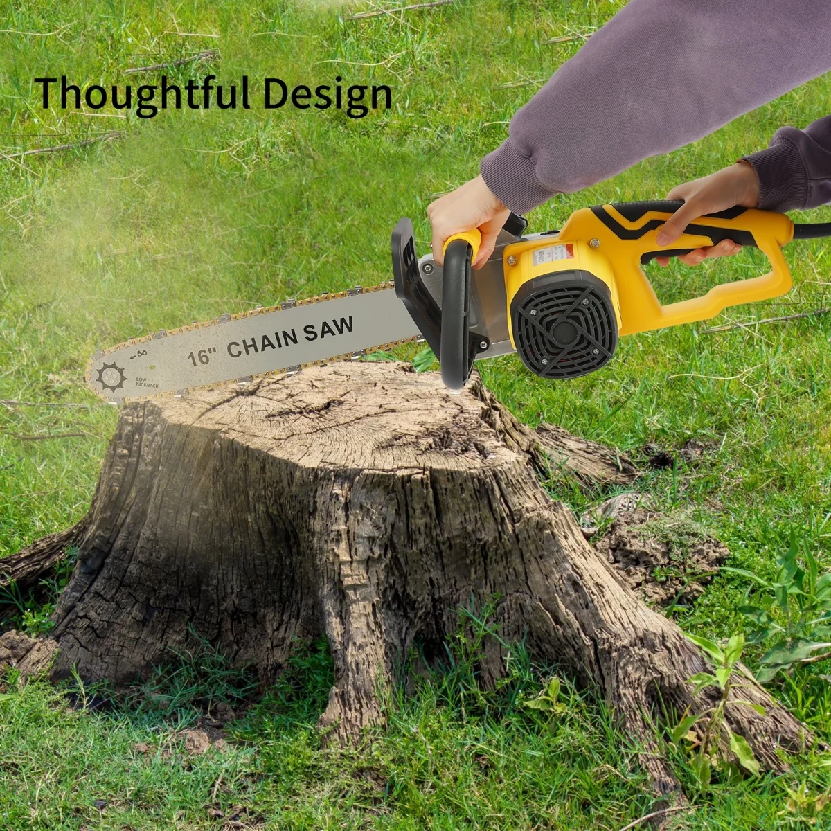 Powerful & Efficient: The 16-inch guide plate and chain, 2000W high power, and 800rpm rotating speed give it a strong power to handle a large 15.75-inch log.