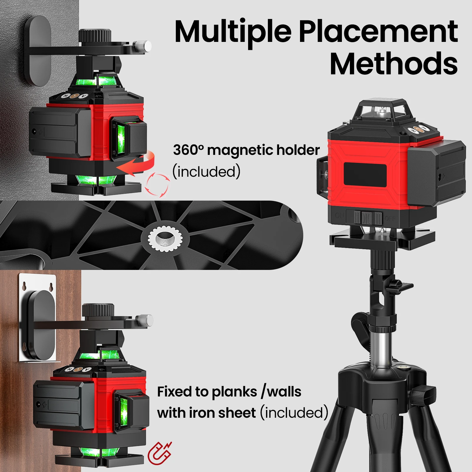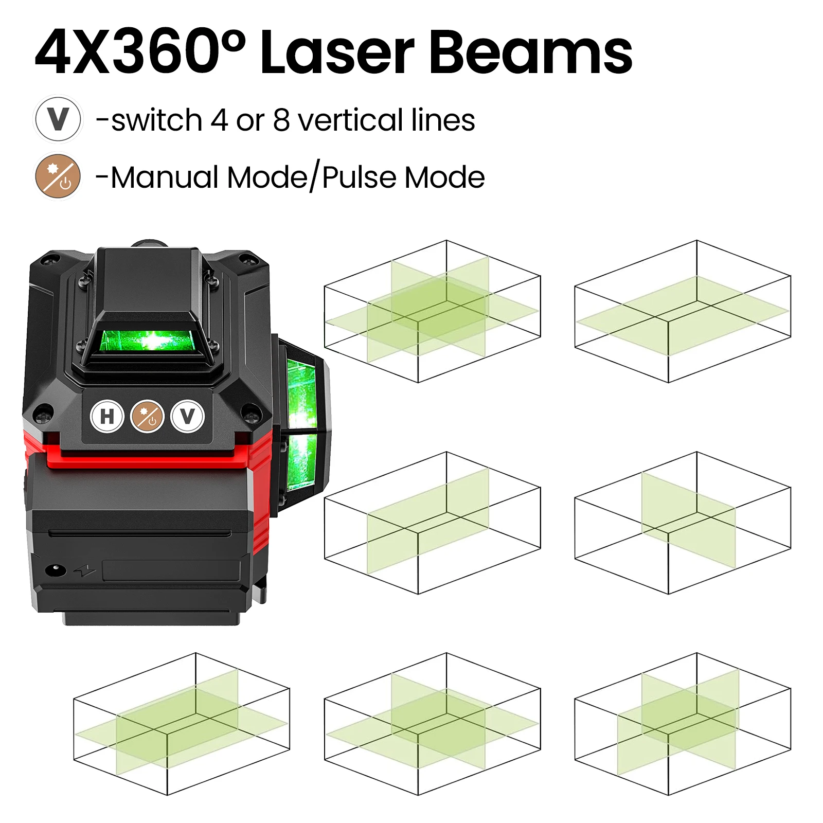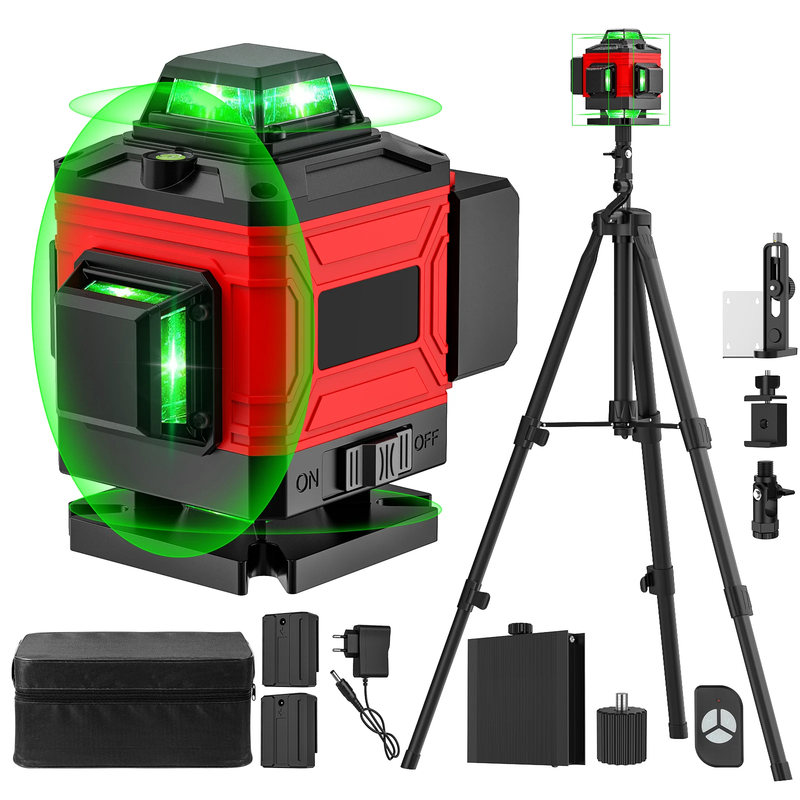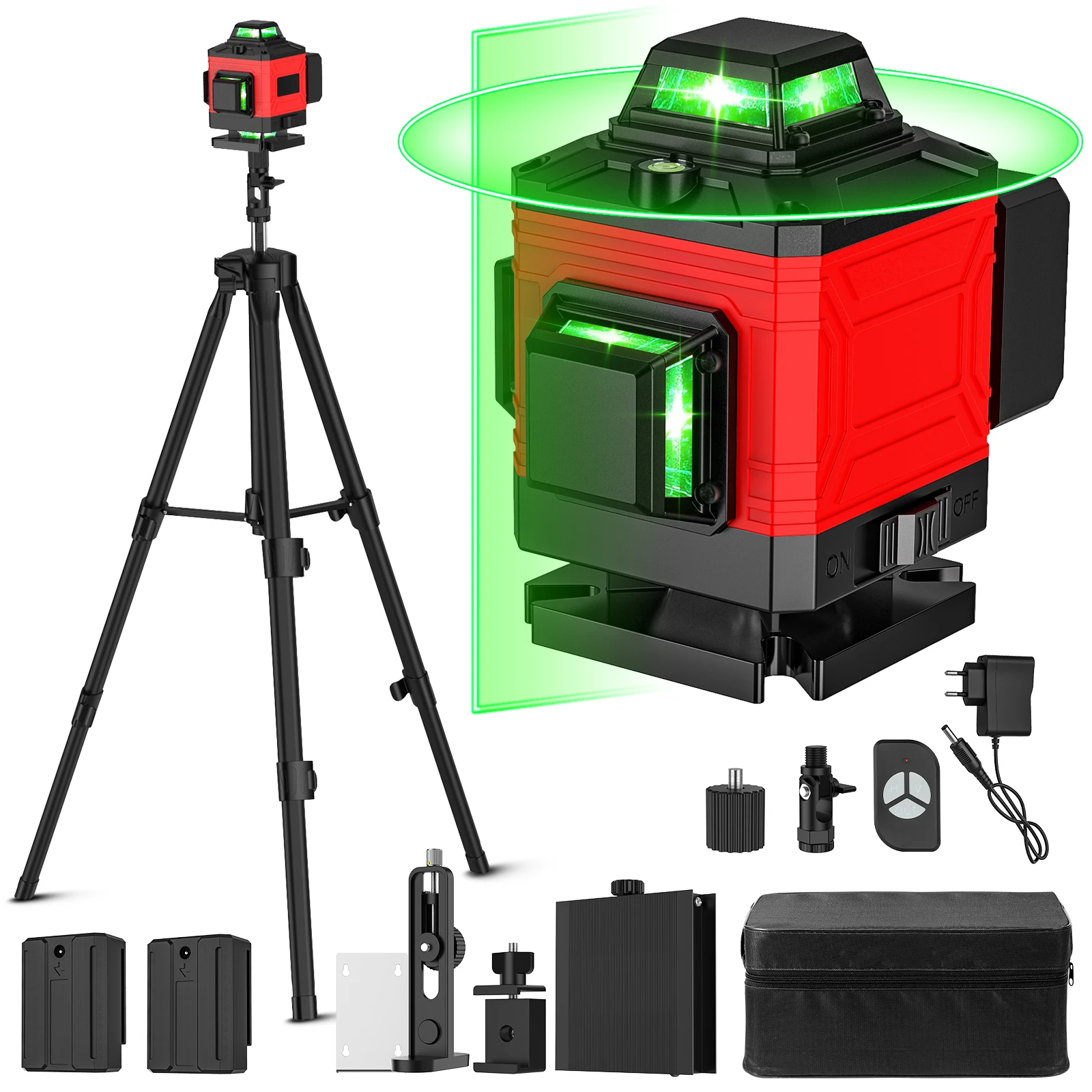 4D 16-Line Laser Level 360° Auto-Leveling - USB Rechargeable Green Beam with Tripod for Construction/DIY (Professional Multi-Function)