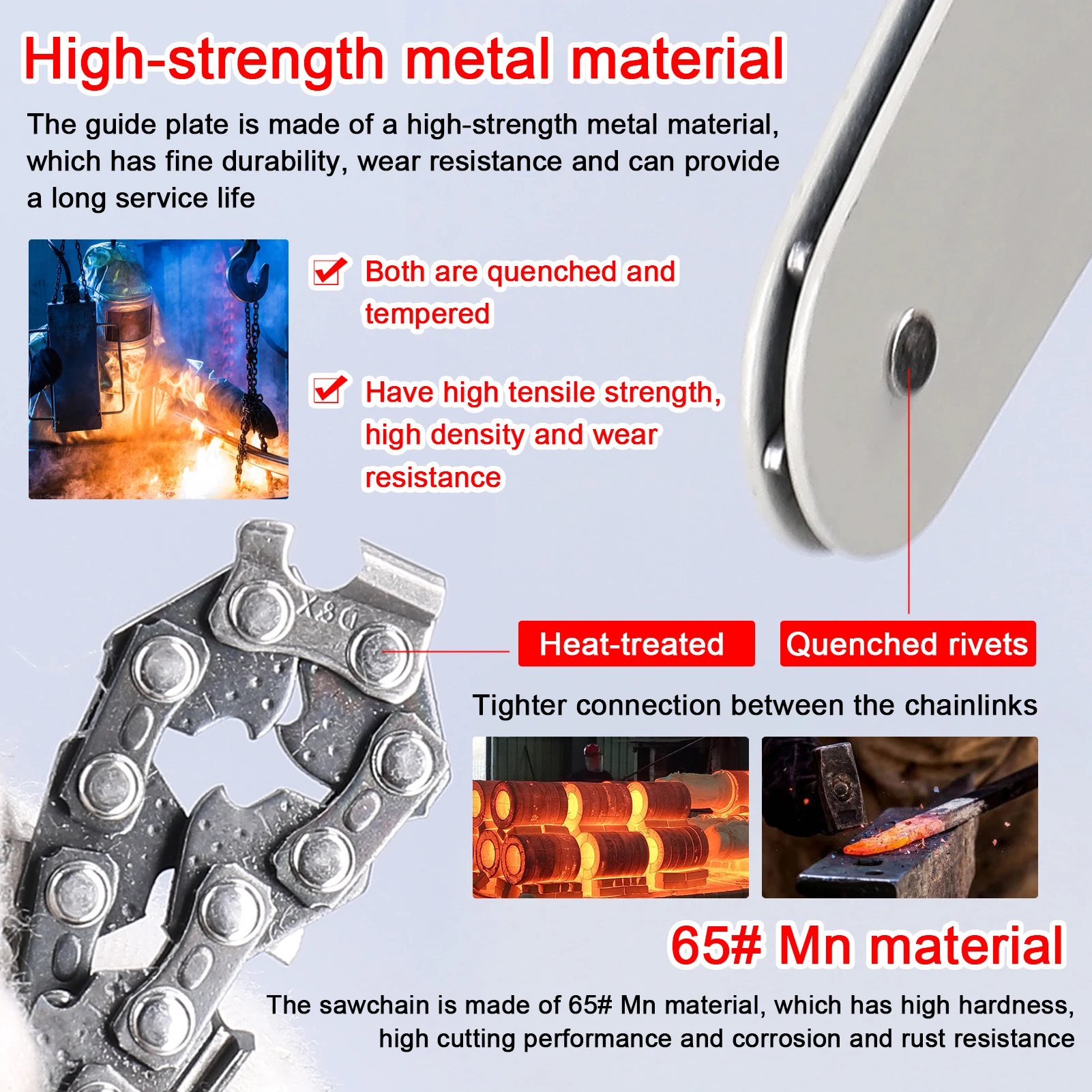 The sawchain has been deep quenching by high temperature, with sharping sawteeth, more wear resistant cutting.