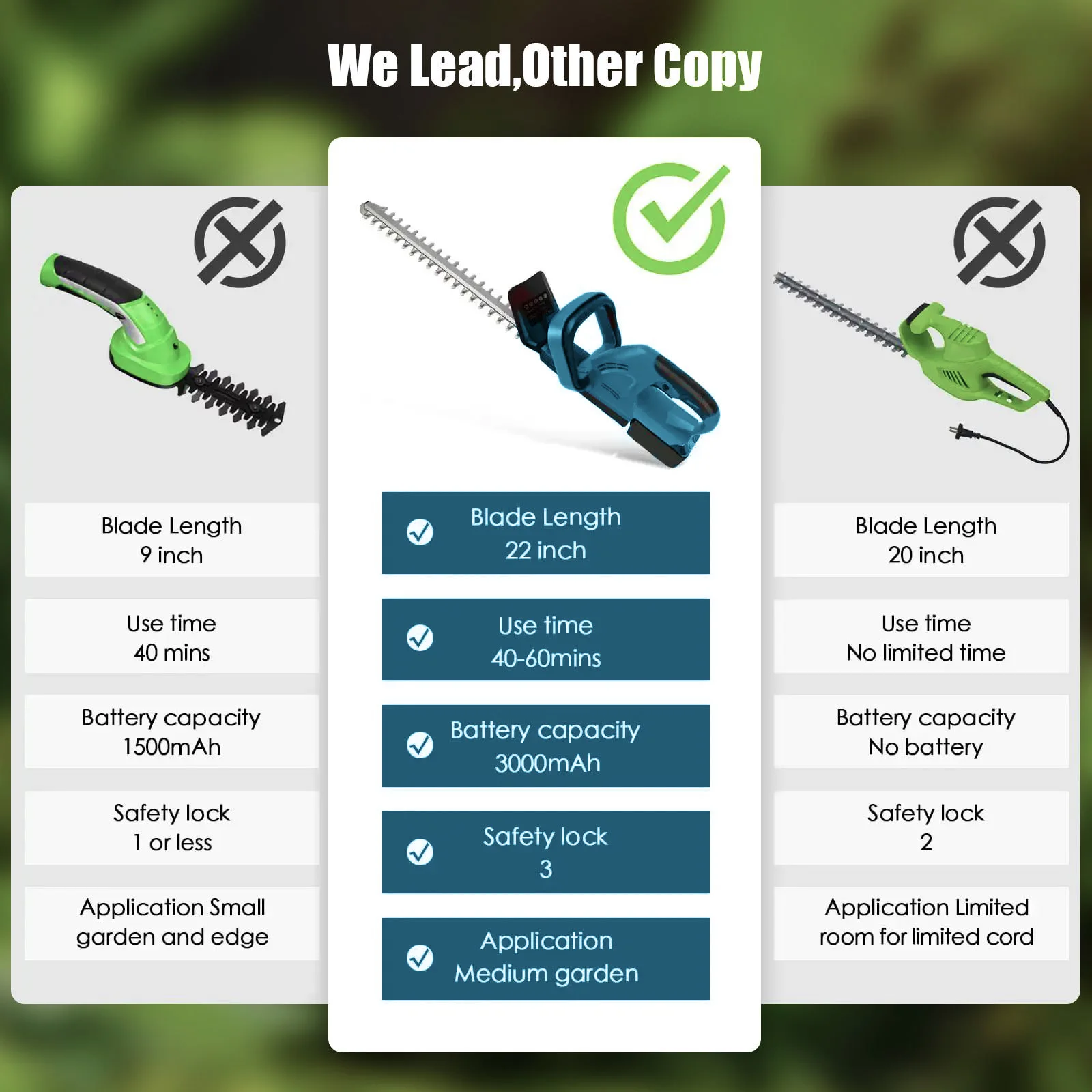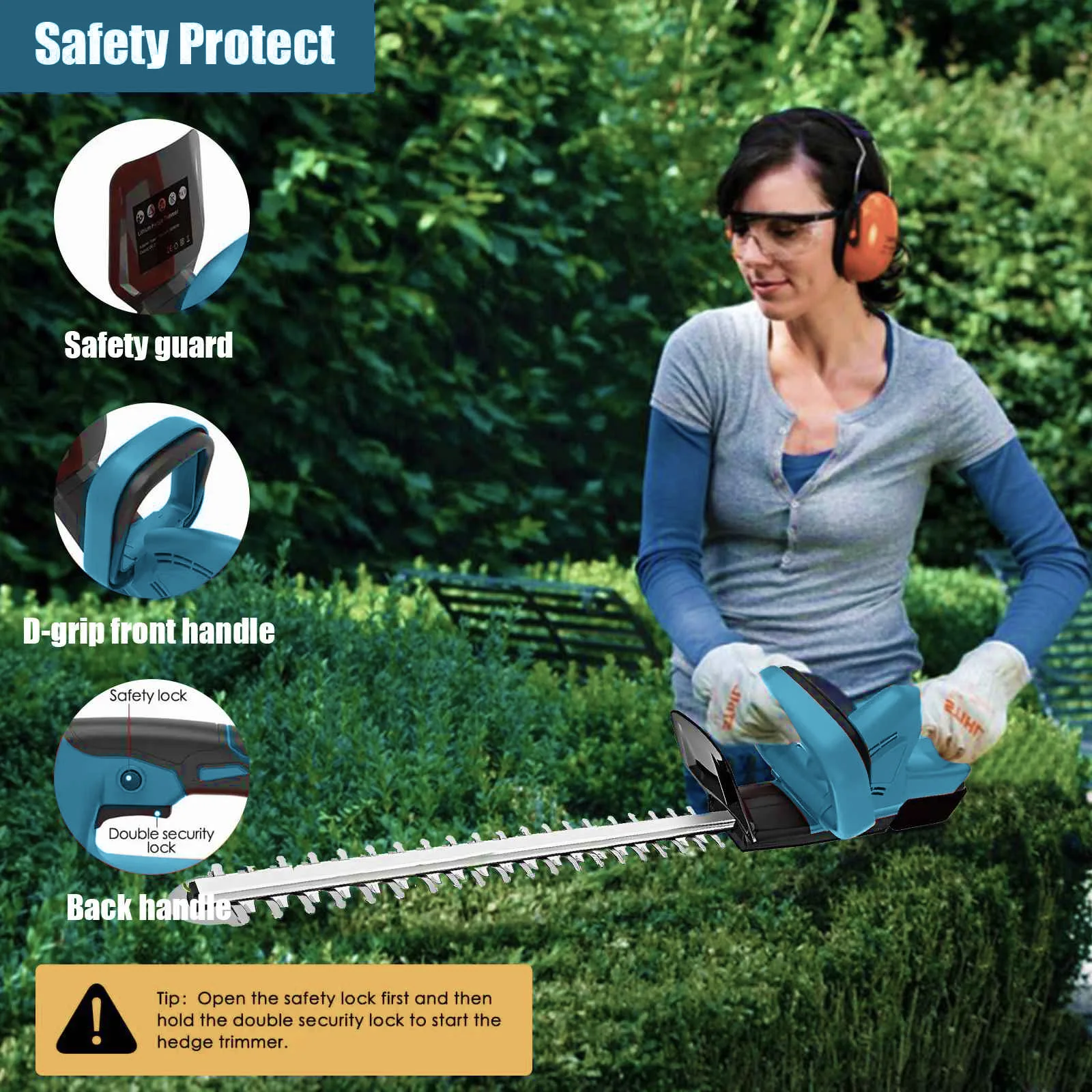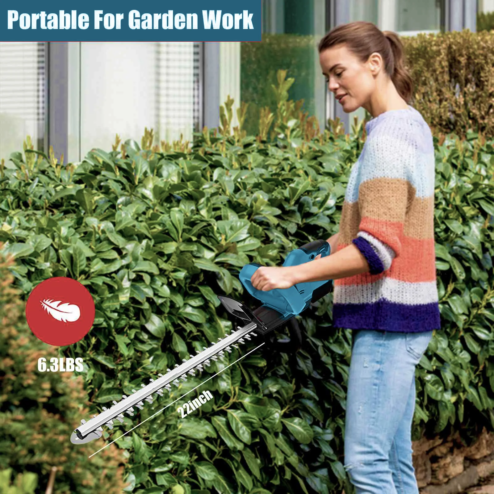 21V Cordless Hedge Trimmer 22 Inch Electric Hedge Trimmer with 3.0Ah Battery & Charger with Dual Action Blade 3/5" Cut Capacity