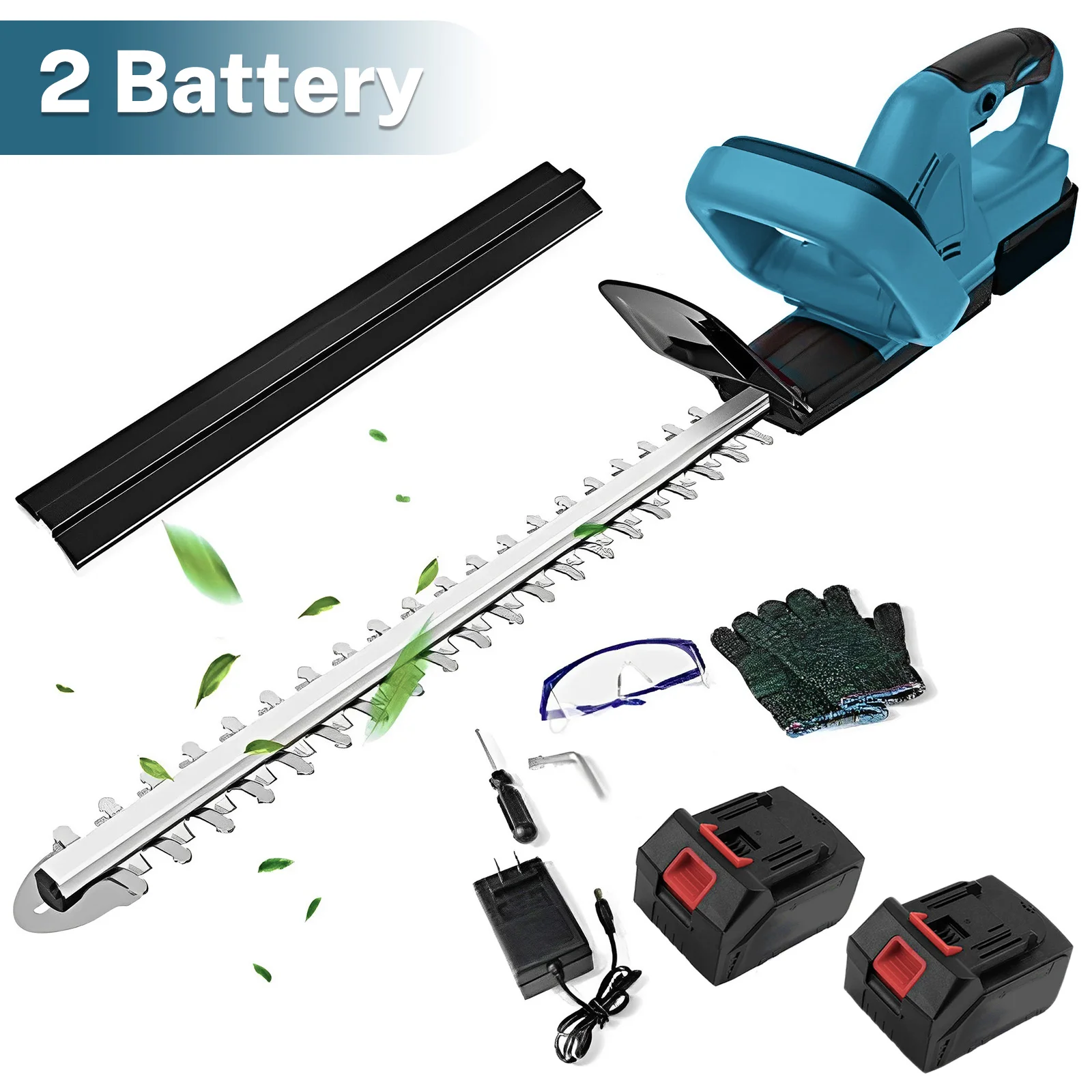 This wireless hedge trimmer comes with a battery and charger, and is equipped with hardened steel laser cutting blades for fast and smooth cutting. The 22 inch electric blade hedge trimmer is equipped with a powerful motor, with a no-load speed of up to 1500rpm, which can quickly take care of large areas. The battery powered hedge trimmer greatly improves overall work efficiency.