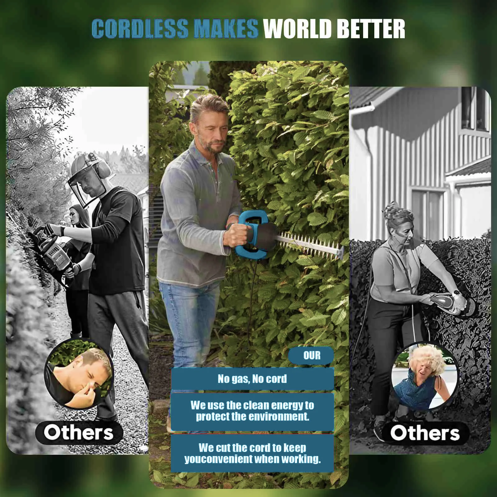 Why Choose a Cordless Hedge Machine? "Compared to wired or gas hedge machines, battery powered hedge machines provide excellent convenience," said professional horticulturist Noah James. You can easily trim hard to reach areas, and small hedge machines are often lighter in weight and less troublesome to work with than wired counterparts. In addition, there are no harmful odors during work and there is less maintenance.