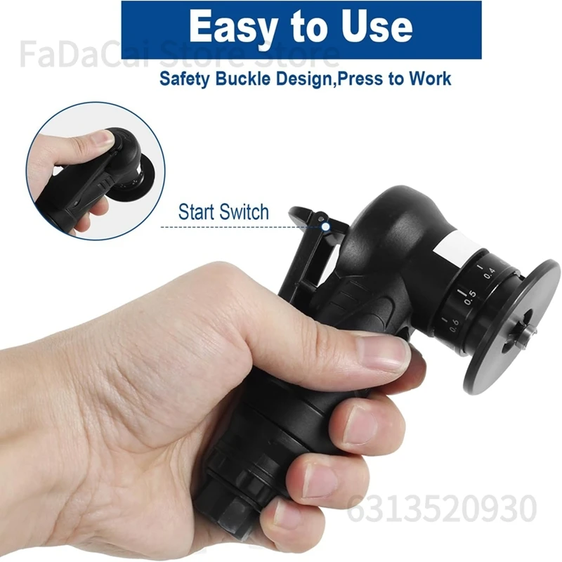 This pneumatic chamfering machine has a wide range of applications and can chamfer R/C angles, round holes, irregular edges, arcs and straight edges on a wide variety of materials such as steel, aluminium, copper, acrylic and wood. Mini deburring trimming chamfering tool features air grinder 1-5 block valve adjustment thickened knob, can adjust the gear speed freely. Chamfering size can be adjusted at will. Safety switch is used to prevent accidental touching and ensure safe use. This 45 degree pneumatic mini chamfering machine air tool is lightweight, small and delicate, easy to operate with one hand. You can easily adjust the chamfering size and change the blade by using the matching spanner. C angle blades are angled and are mainly used for metal chamfering, R angle blades are rounded and chamfered and are used in woodworking. Free Speed 30000 RPM, Air consumption 0.4/min, Air inlet port: 1/4 inch PT. Trimming Capacity: Chamfering: C0.1-C1.5, ARC corner:R0.1-R1.5, Adjustable depth:0.1mm-0.9mm. The pneumatic chamfering machine adopts a new lightweight design and can be easily operated with one hand. The chamfering size can be adjusted freely. The speed of the gear can be freely adjusted and it is widely used for chamfering a wide range of materials such as metal and wood. Safe to Use: The safety switch prevents accidental contact and protects the user's safety at all times. Easy to Operate: This mini pneumatic chamfering machine is lightweight and easy to operate with one hand for quick deburring. Product name:Chamfer Tool Connector:4cm Chamfering hole diameter:greater than equal 8mm Colour:As Shown Material:metal Size:15x5.8cm, Disc:4.8cm, Body Diameter:3.2cm Package Contents: 1 x Black Pneumatic Chamfering Machine 2 x Bearing Fixing Screws 4 x Blade Fixing Screws