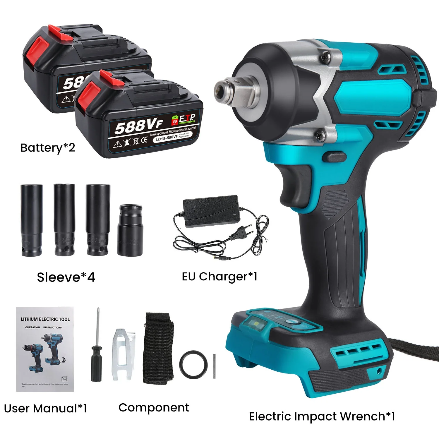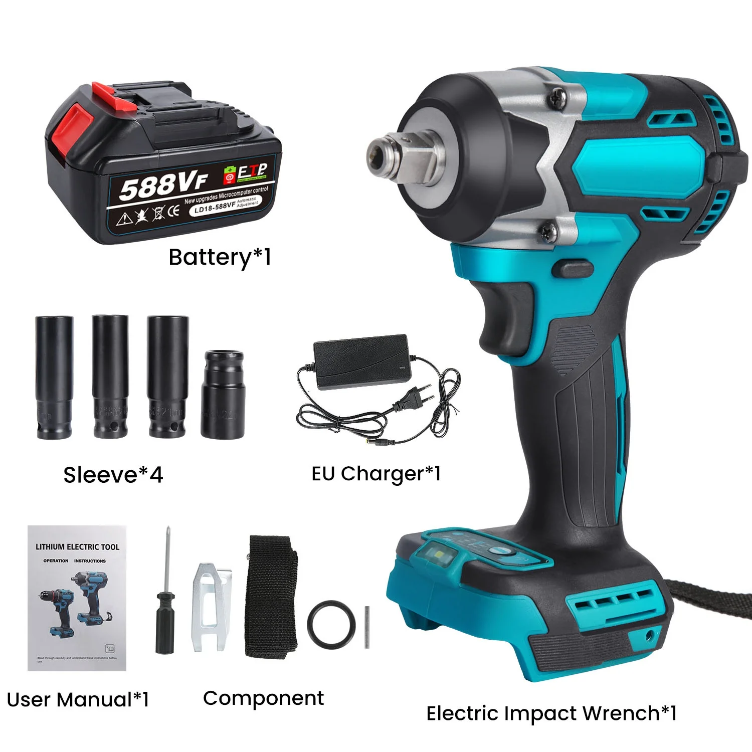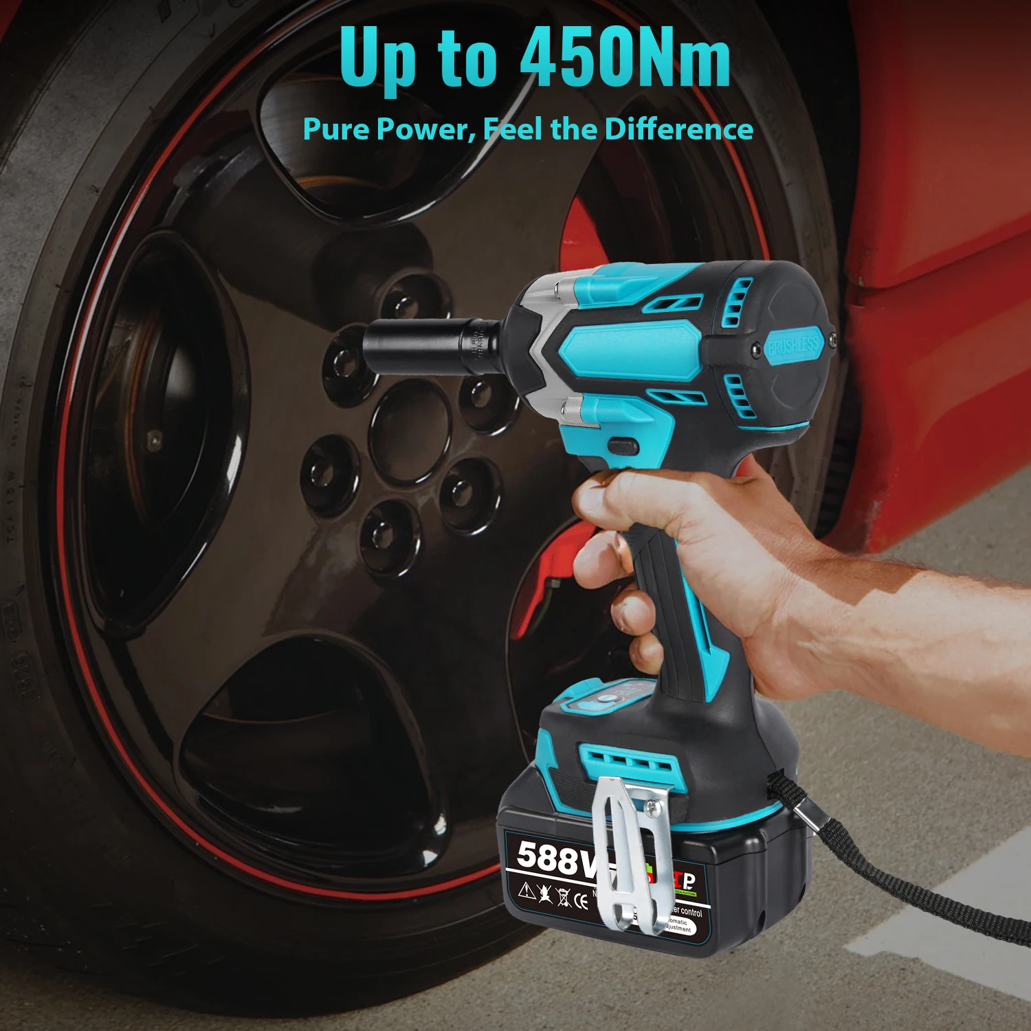 450Nm Cordless Electric Torque Wrench, Brushless Electric Wrench, Power Tool with Sleeve with Recharabble Battery Repair Tool