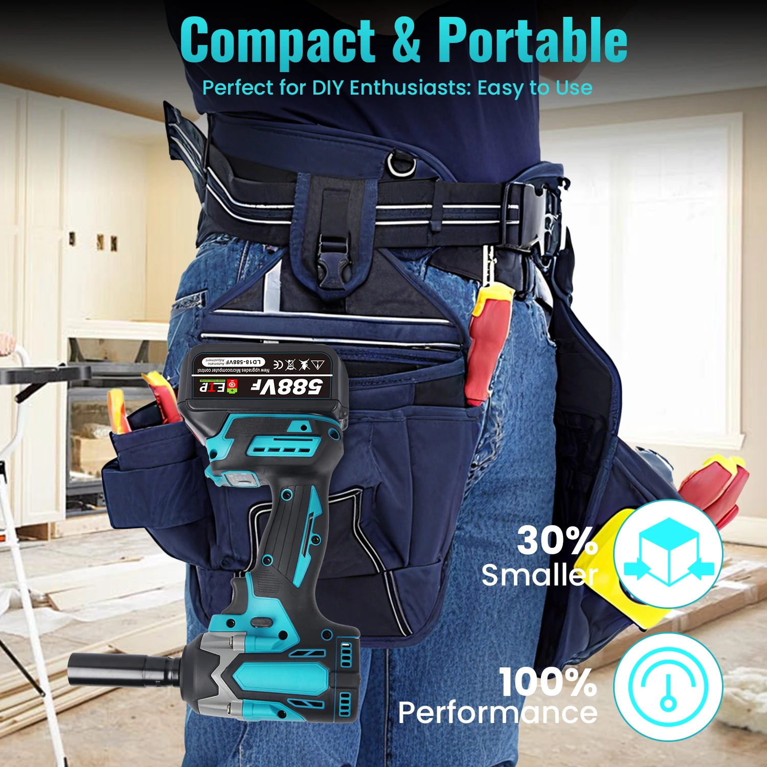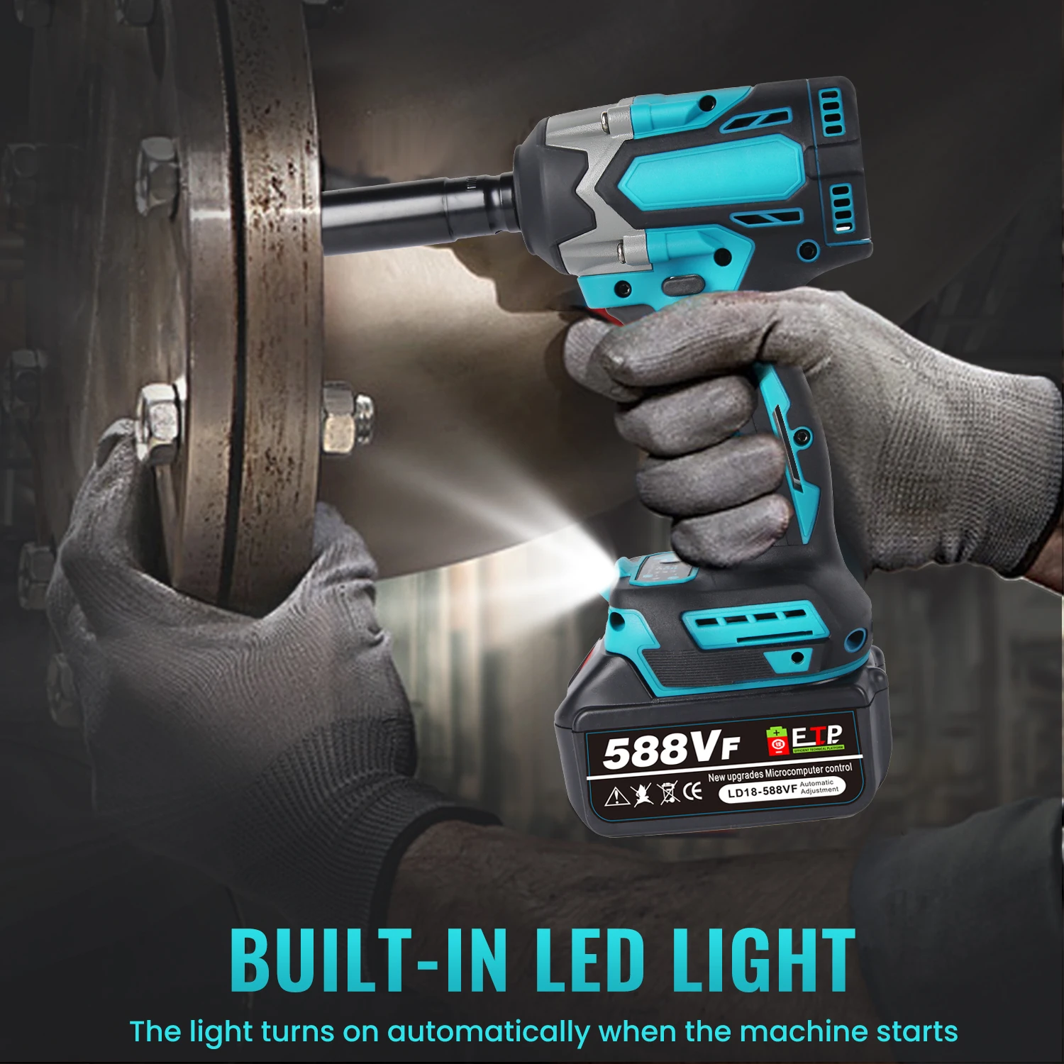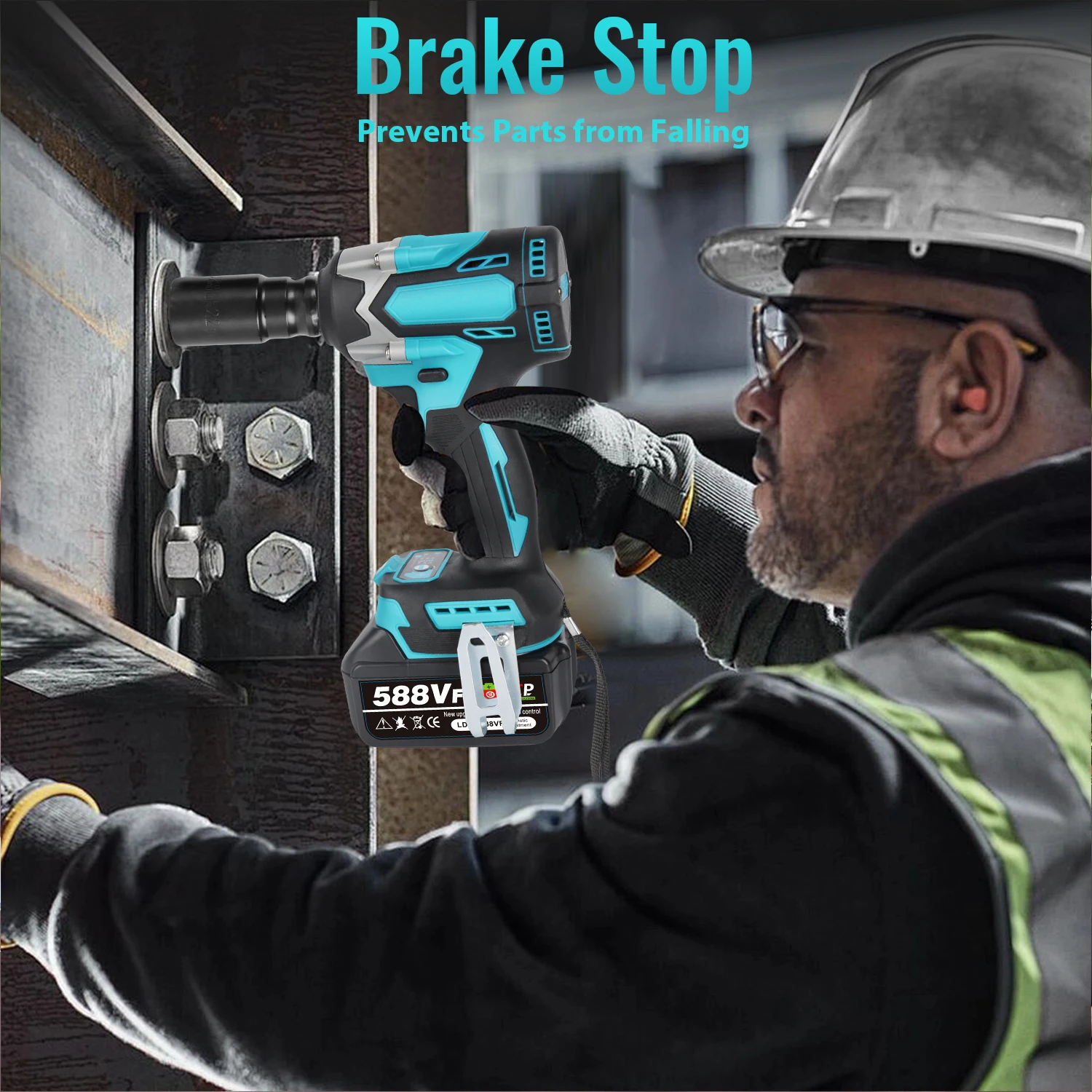 This brushless electric wrench is designed for high-intensity operations. It is equipped with a brushless motor and provides 450Nm tightening torque and 500Nm disassembly torque, which can easily cope with the high torque requirements of automobile tires, steel structures, etc. Anti-fall lanyard + LED lighting, safety and convenience!