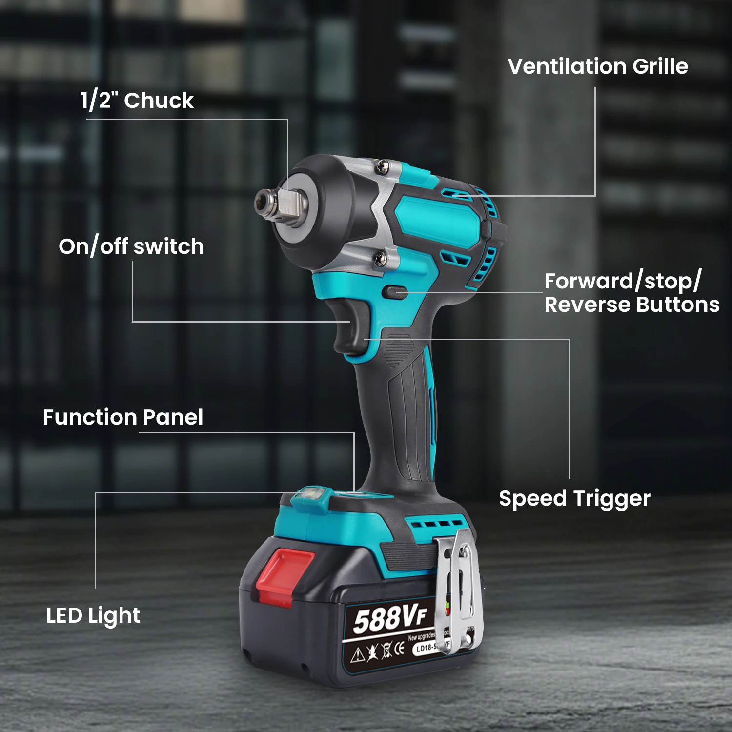 The lightweight body meets the requirements of M10-M16 bolt tightening, and the 1600rpm speed meets the needs of home maintenance, furniture assembly and other scenarios. The 12.7mm universal shaft head can be extended to a variety of sleeves, and the forward and reverse switching is switched with one button. It is easy to operate and is a must-have tool for DIY enthusiasts.