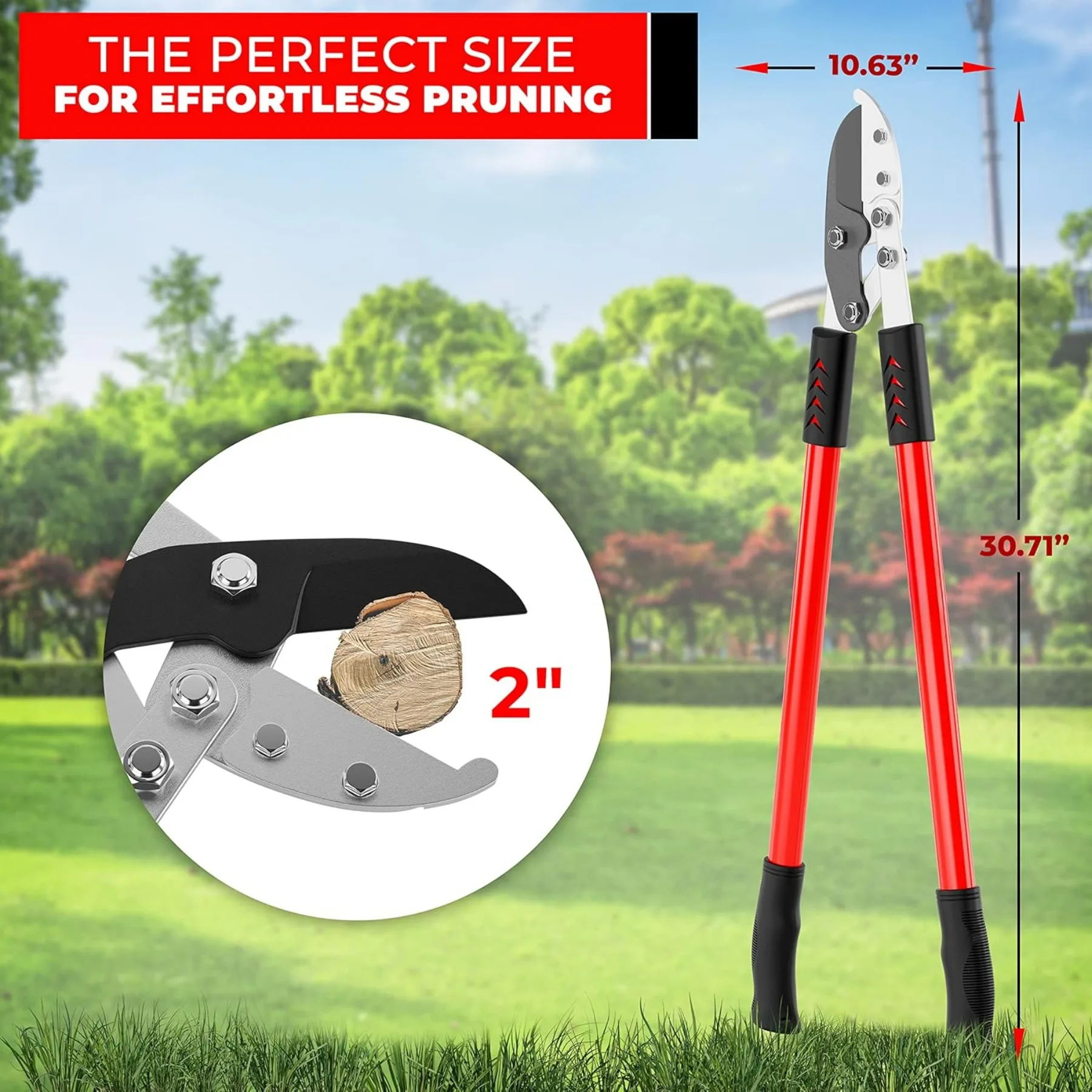 CHOPS THROUGH 5cm BRANCHES effortlessly. This KING OF LOPPERS will allow for fast removal of dry and woody growth and is the ideal tool for preparatory cuts and cut-to-length work. The lopper is designed and built for professional grade applications and makes cutting dramatically easy through extra leverage and compound action power!