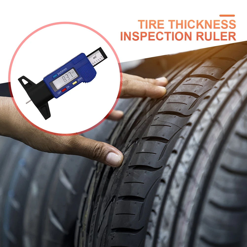 Digital Tread Depth Gauge Battery Operated Thickness Gauge High Precision Automobile Tire Wear Detection Measuring Depth Caliper