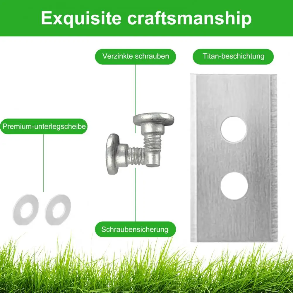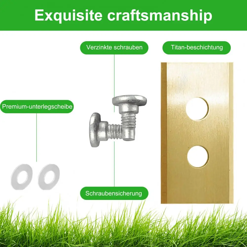 Versatile 2-Hole Design: Our exquisite blades feature a unique 2-hole design that allows for flipping and usage on both sides, extending their lifespan up to four times. Experience enhanced convenience and efficiency in maintaining your lawn effortlessly.