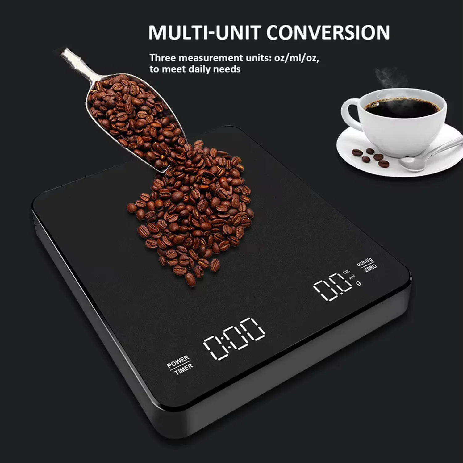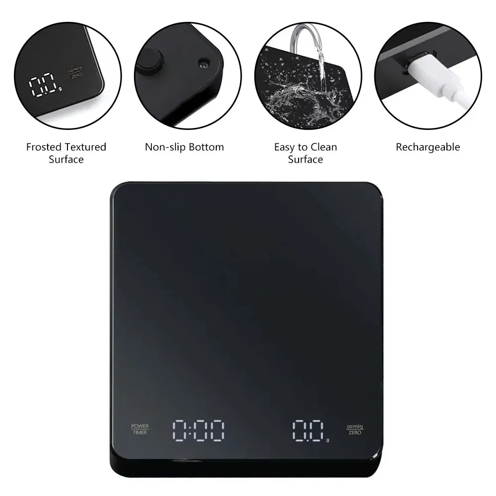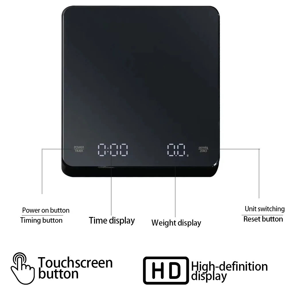 1.[Coffee scale built-in high-precision weighing sensor] accuracy is 0.1g/0.005oz, the maximum measurement value is 3KG/6.6lbs. Stable and accurate coffee scales ensure high quality and the best taste, ensuring consistency from cup to cup.