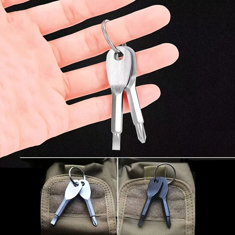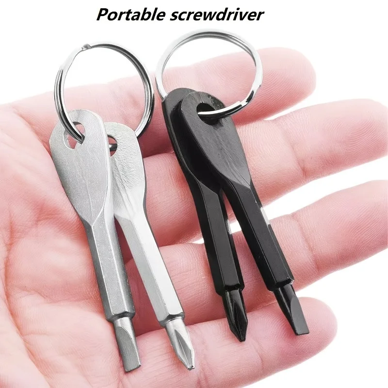 2PCS Portable Screwdriver Set Outdoor EDC Personal Tool with Flat Head And Phillips Head Screwdrivers Key Ring Included