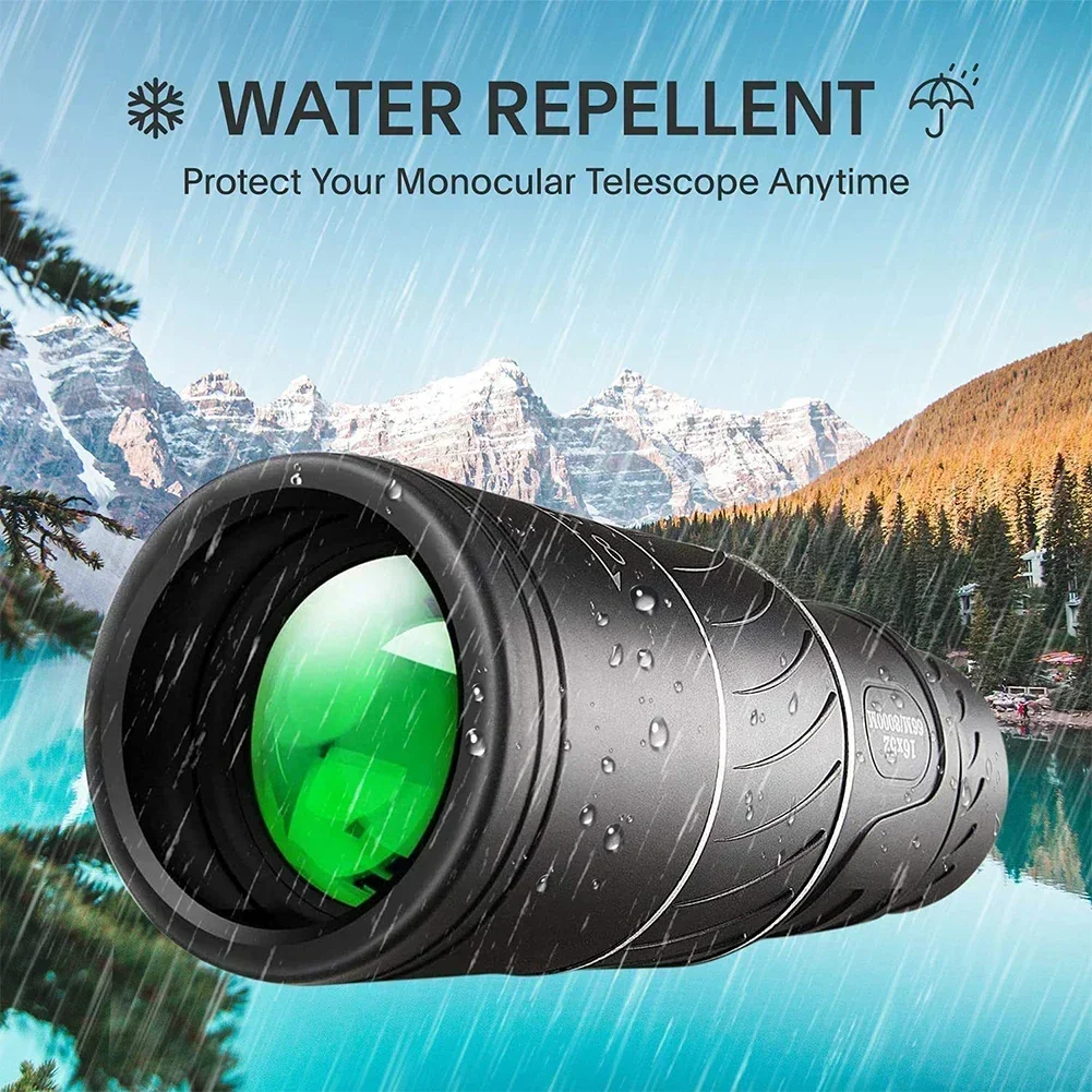 *2. See things 40X closer and get clearer and brighter with 60mm objective lens and 16mm eye lens. The larger the objective lens, the more light that enters the monocular, and the brighter the image.