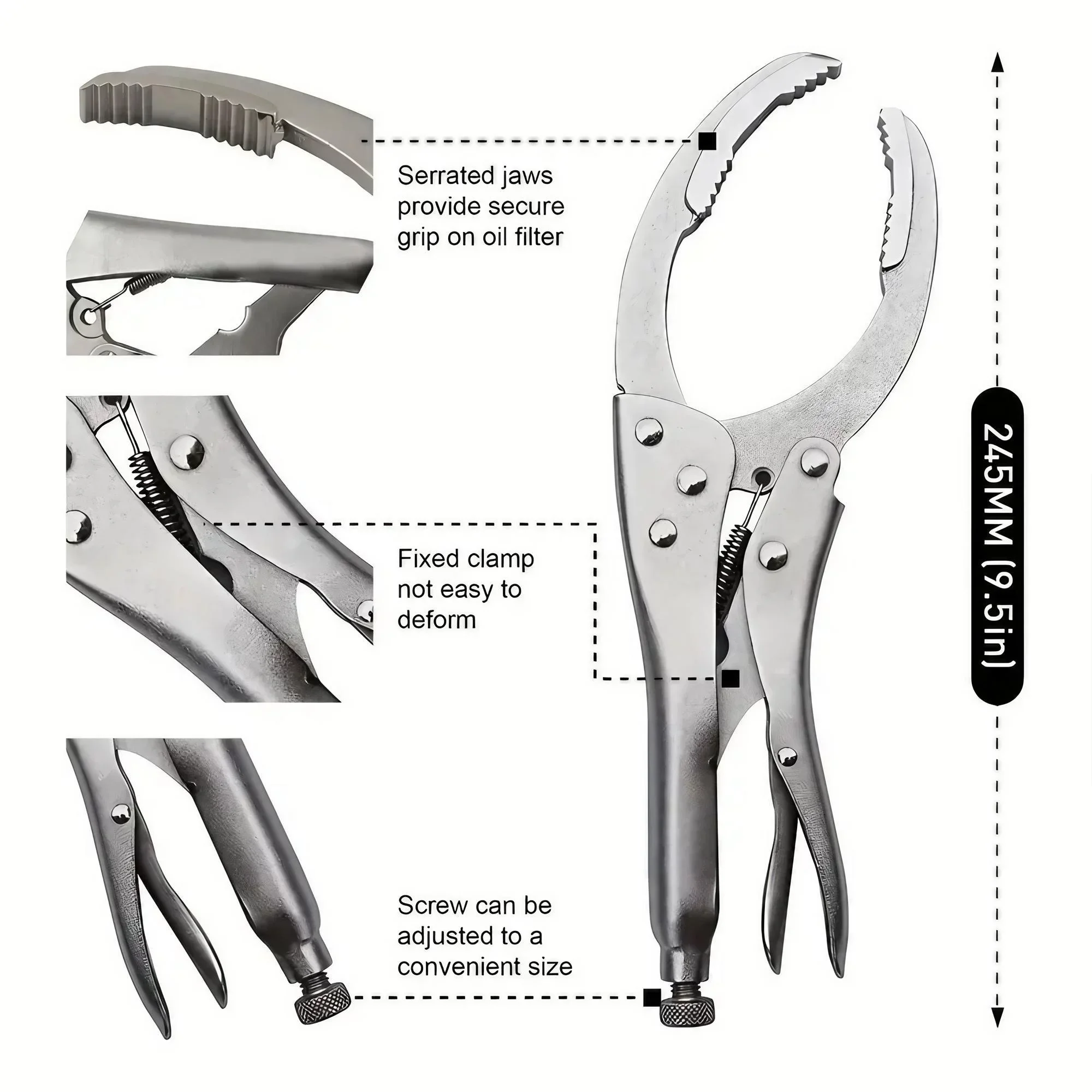 Efficient: Easily remove stubborn oil filters with this locking grip wrench tool.