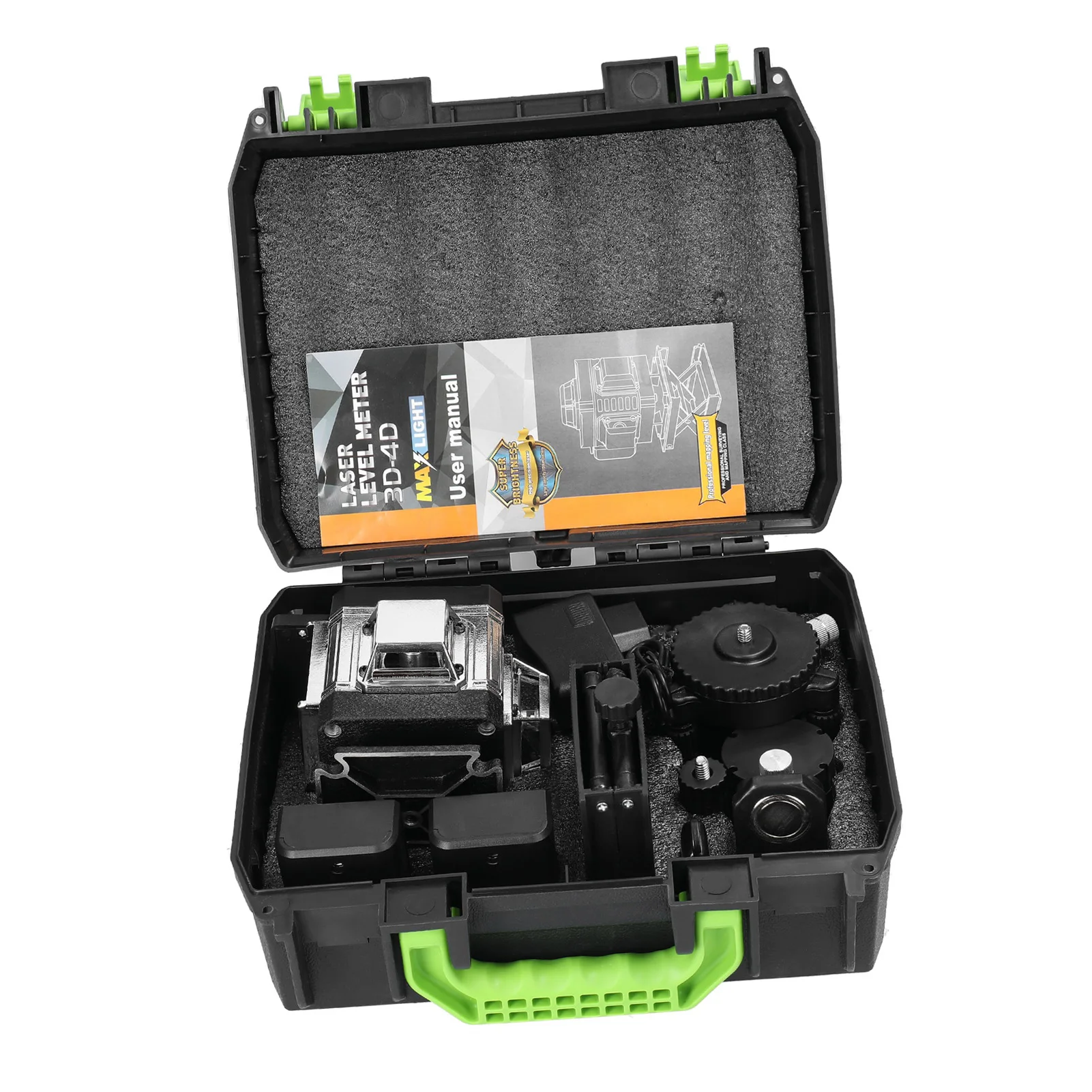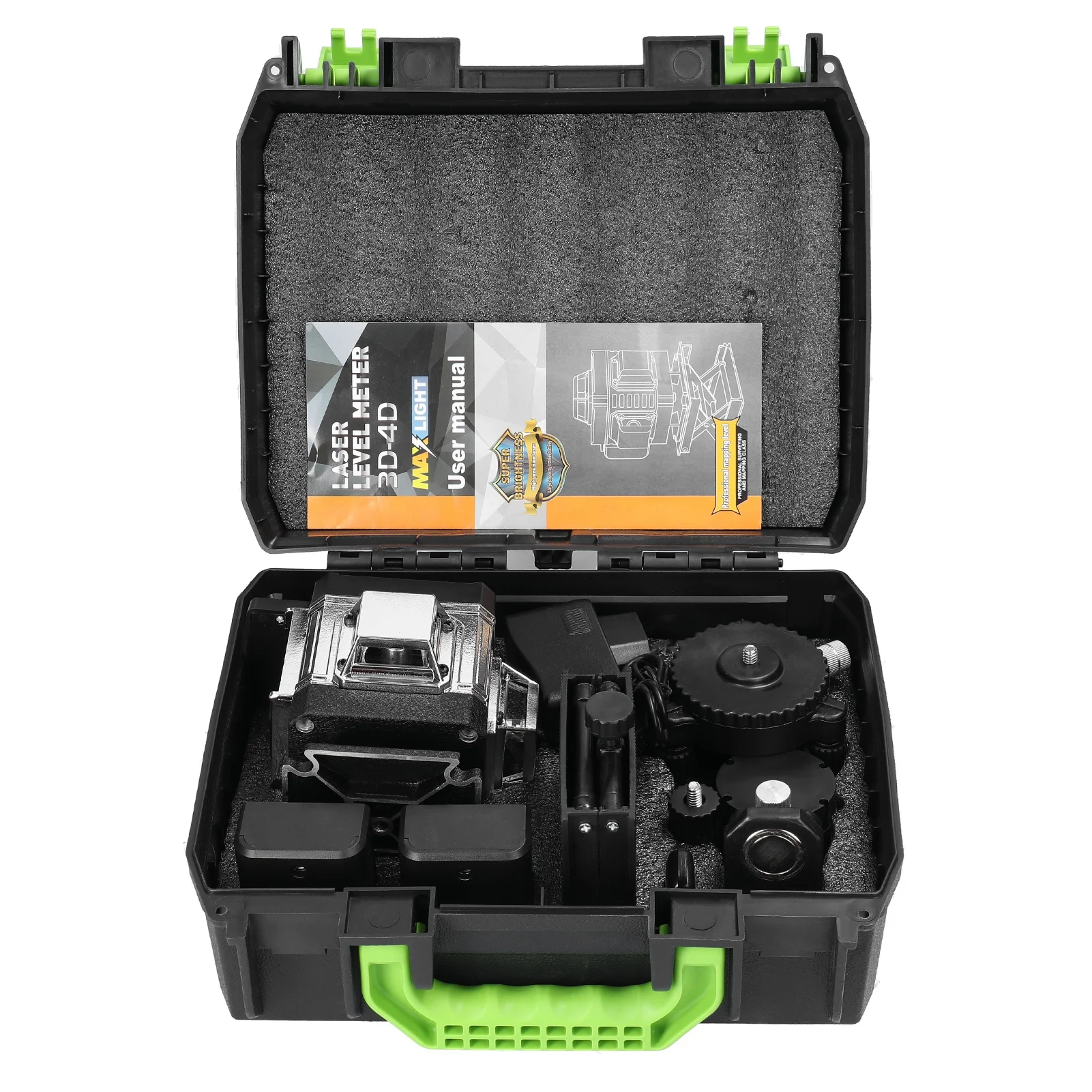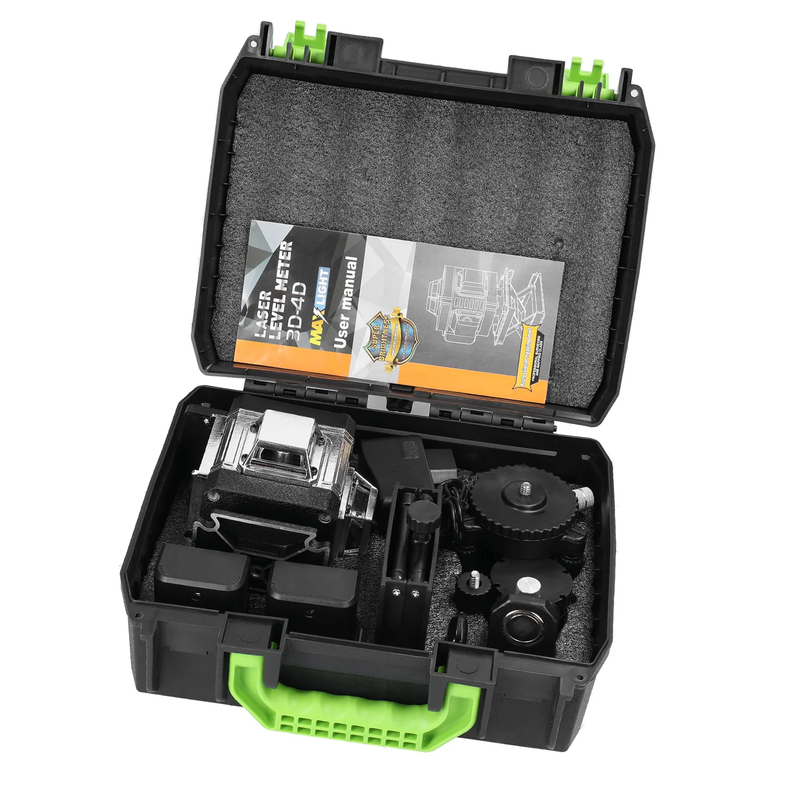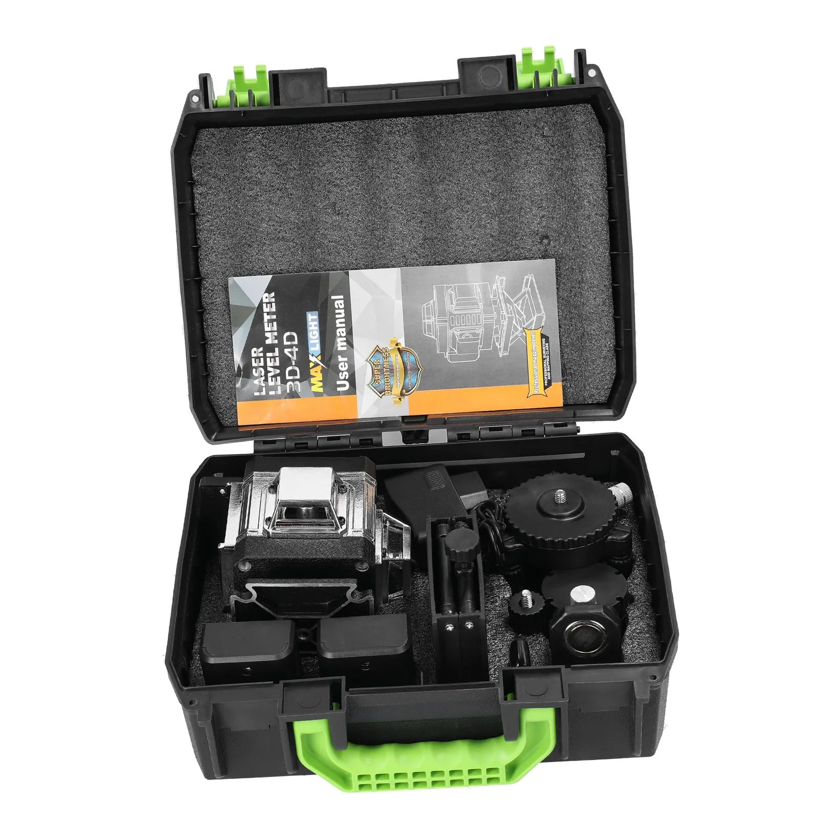 Using 4 high precise millimeter level green line sources, with higher brightness, strong penetrability, thickness adjustable and brightness adjustable, and the light is clearly visible both indoors and outdoors.