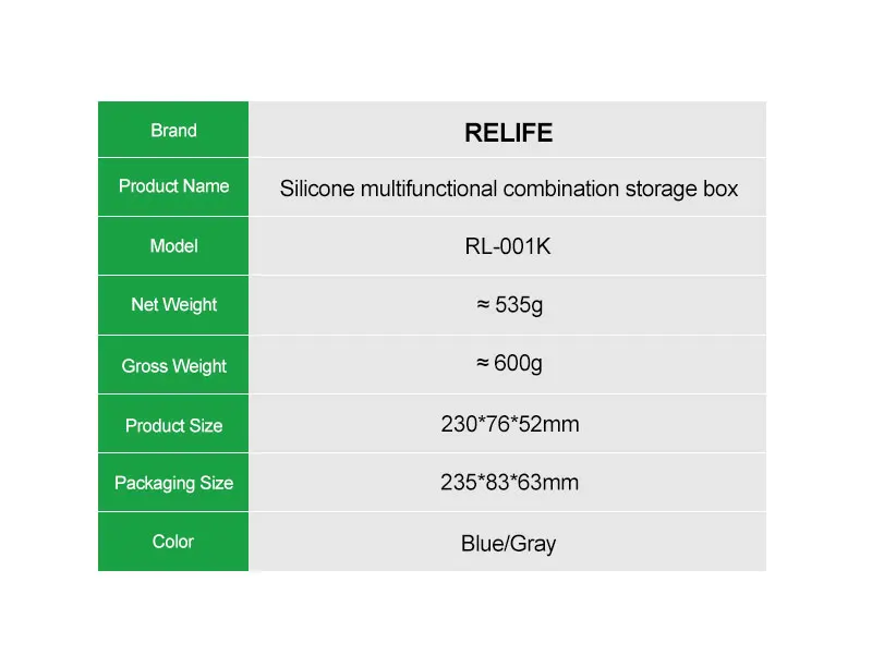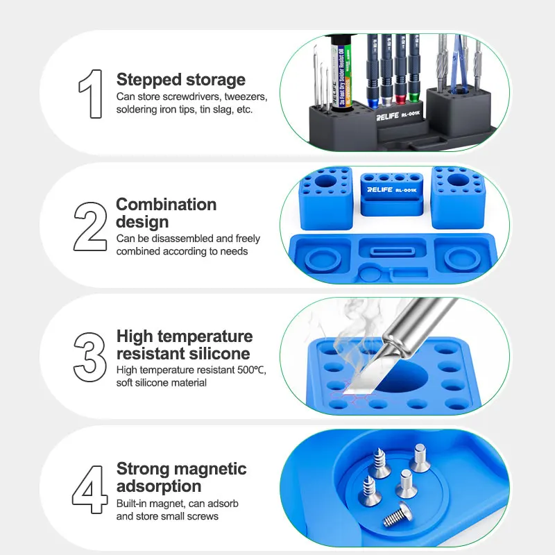 RELIFE RL-001K Multi-purpose Storage Box High Temperature Resistant 500℃ Silicone Material Stepped Storage Tools