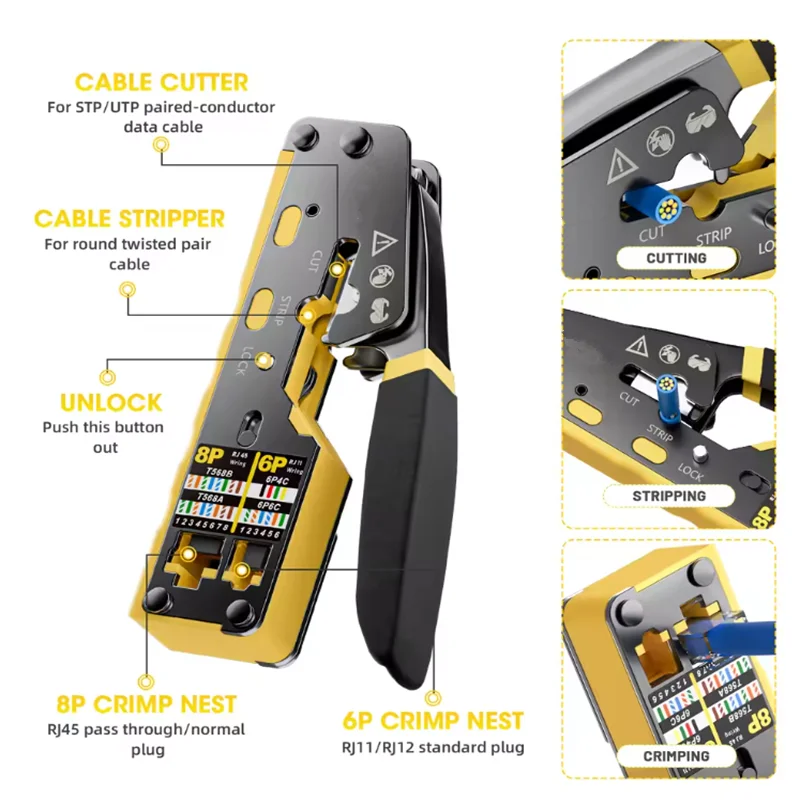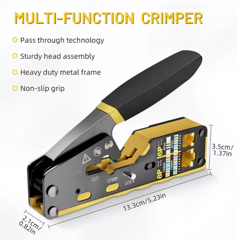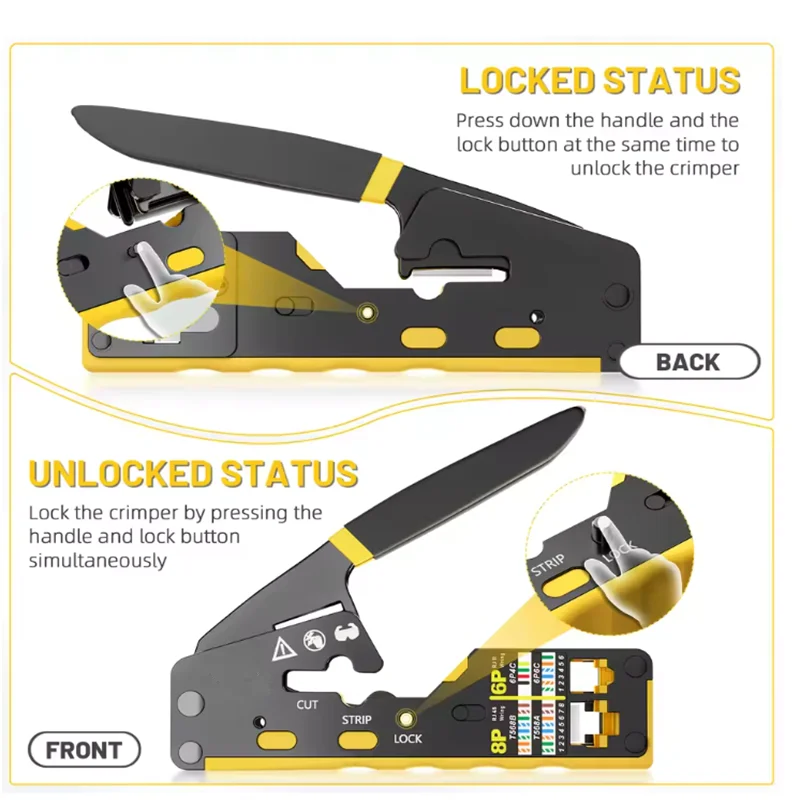 • Efficient Crimping :The tool features an efficient crimping mechanism that ensures secure and precise connection of Ethernet cables, enhancing the overall network efficiency.