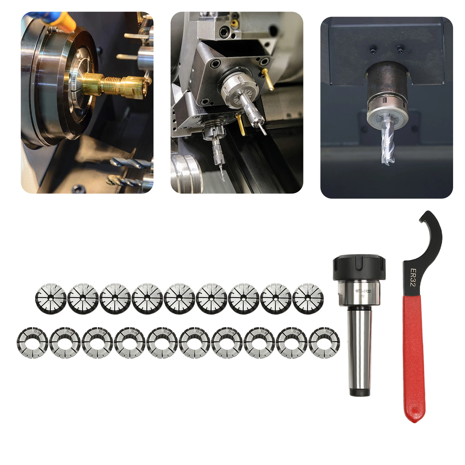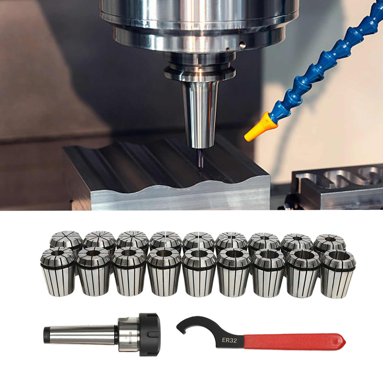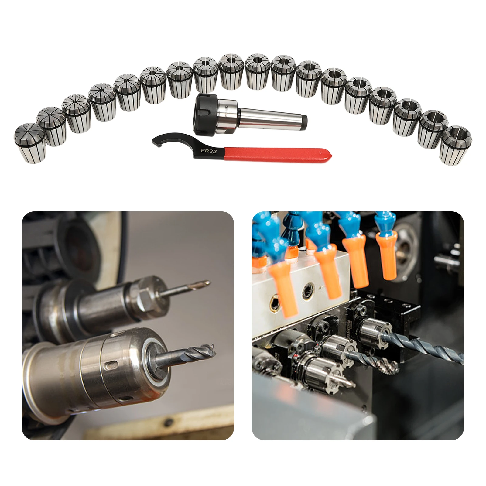 18Pcs ER32 Collets Set MT3 Morse Taper Shank Chuck Holder Spring Steel Collets Kit for CNC Milling Machine Industrial Tools