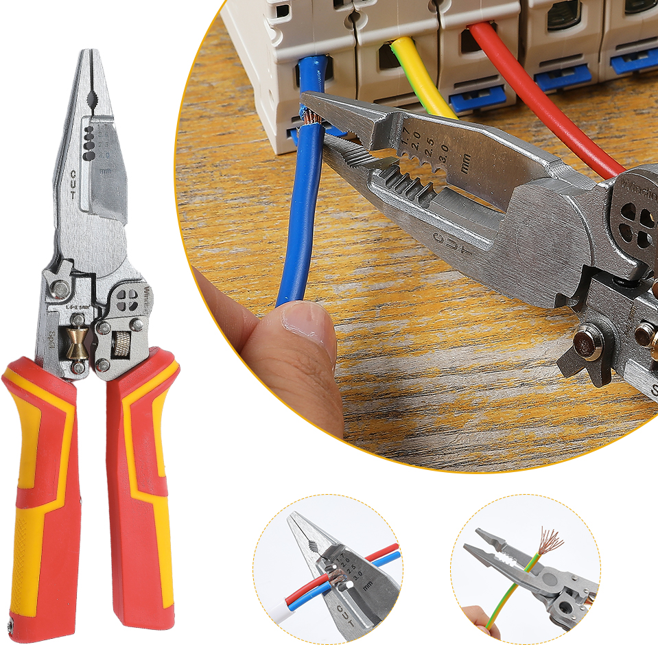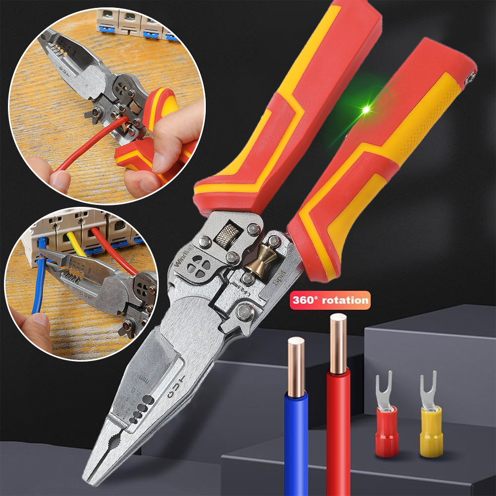 8-in-1 Multi-function Wire Stripper Electricians Voltage Testing Cable Cutting Scissors Crimping Pliers