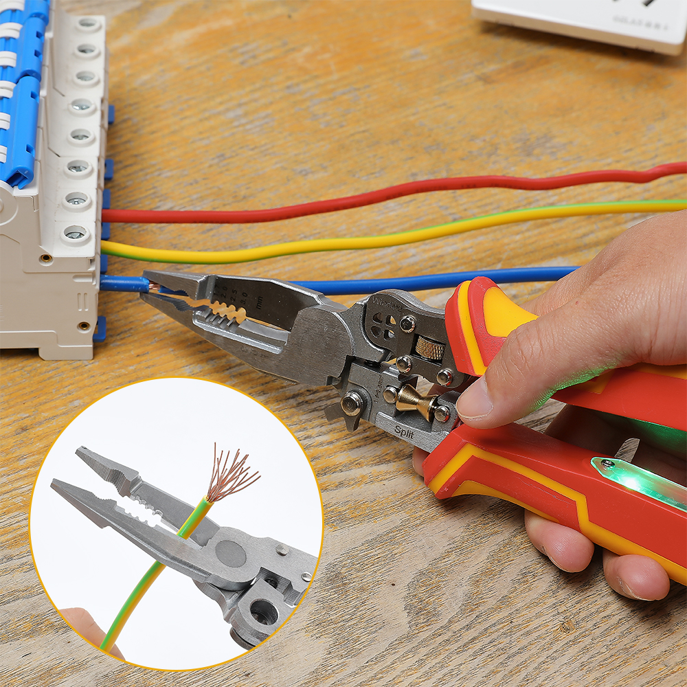 Sharp wire splitting: Equipped with a sharp wire split, these pliers can handle both thick and thin wires without damaging the core. The unique wire gap function ensures clean cuts, perfect for various electrical projects.