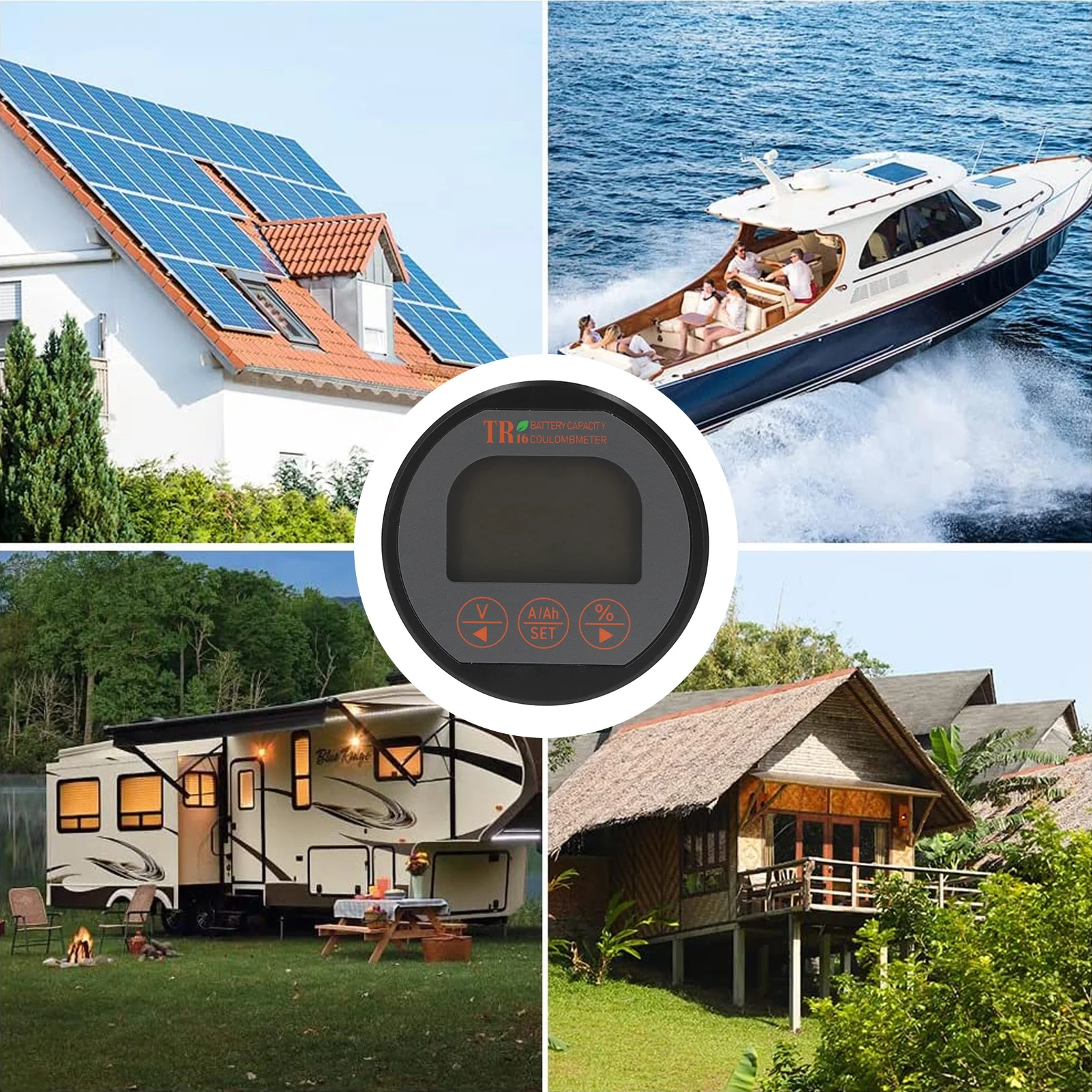 Battery Meter Current Voltage Tester Capacity Monitor Waterproof Battery Voltage Monitor 8‑120V 0‑75A for Safety