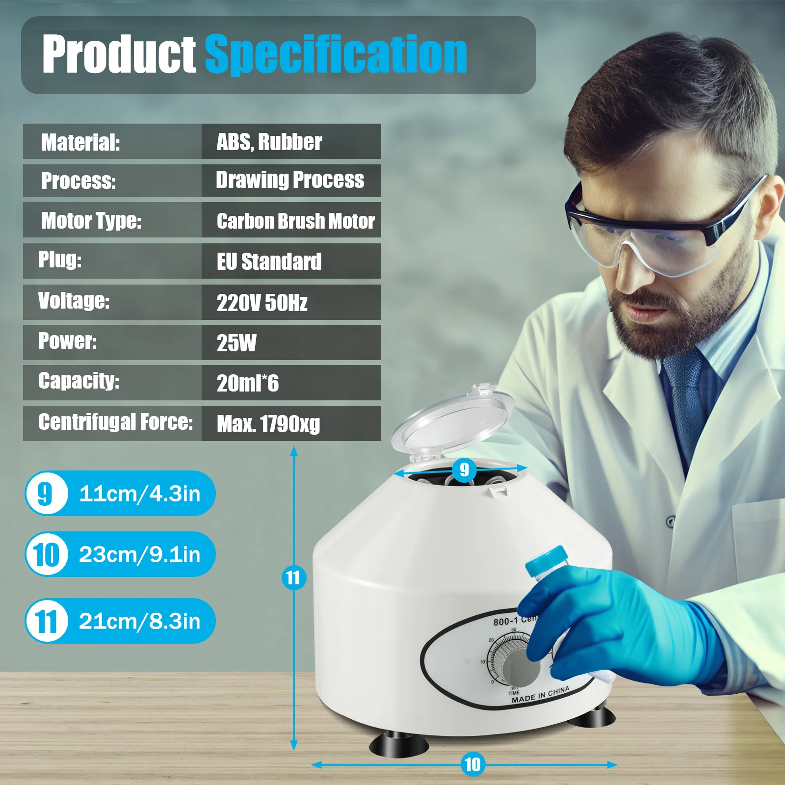 This centrifuge machine with a powerful 25W motor can provide a Max. 1790xg centrifugal force, ensuring rapid separation of samples. It has a huge capacity to hold 6*20ml test tubes at once, which can skyrocket your experimental efficiency to an unprecedented level! Both researchers and clinical laboratory staff can benefit from it, as it is an indispensable and efficient tool for laboratories.