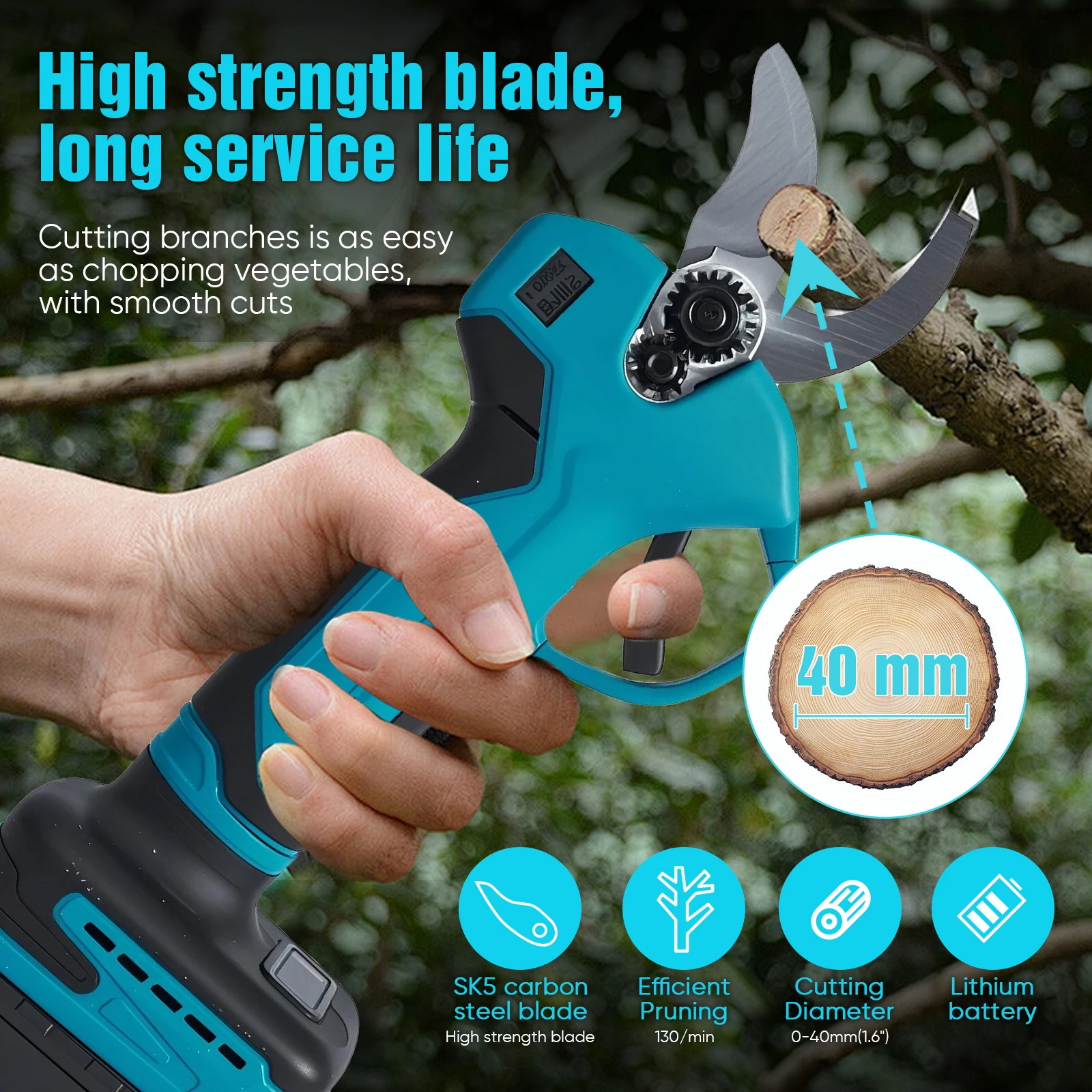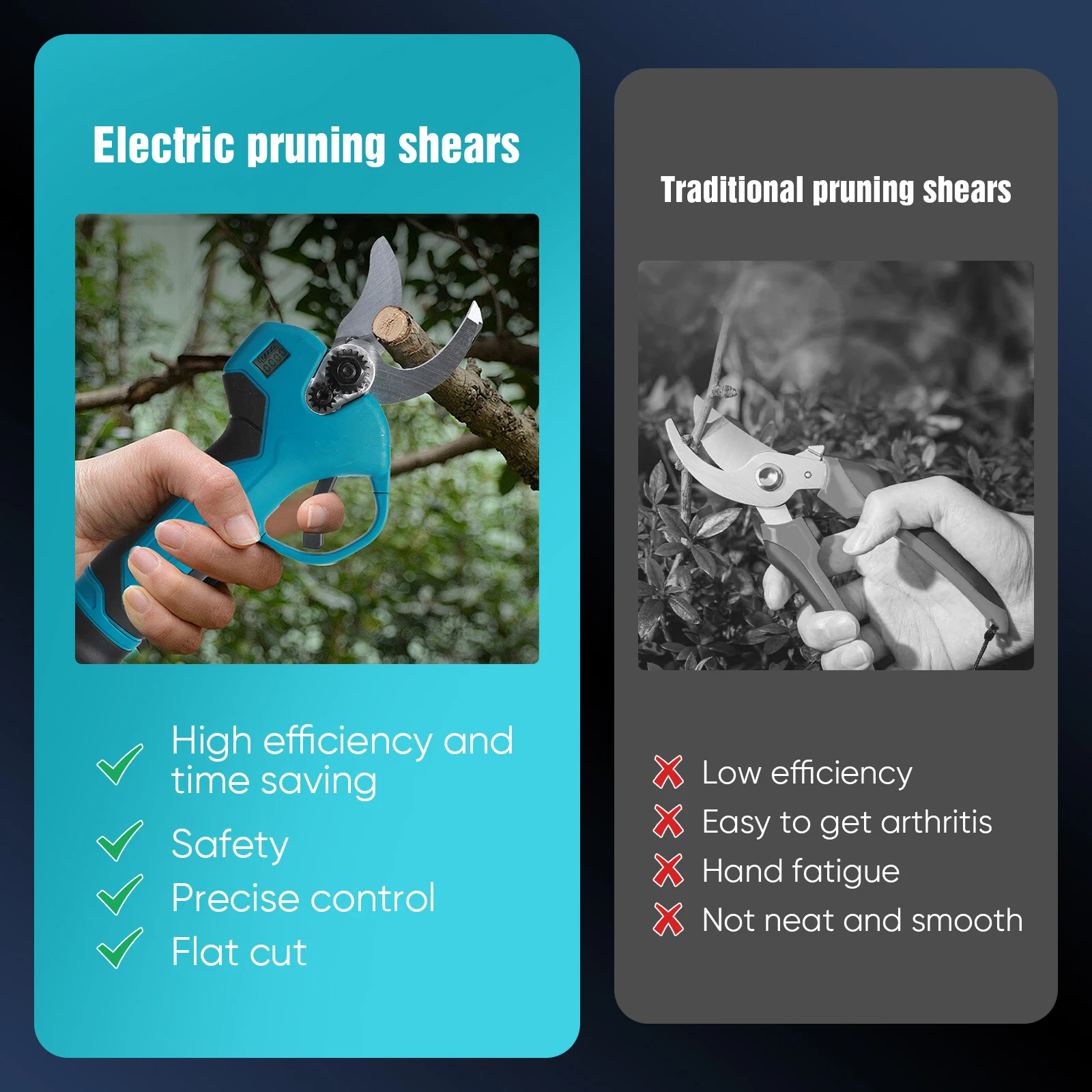 Brushless Electric Pruner Pruning Shears Fruit Tree Bonsai Pruning Branches Cutter Power Tool With 2pcs 21V Battery
