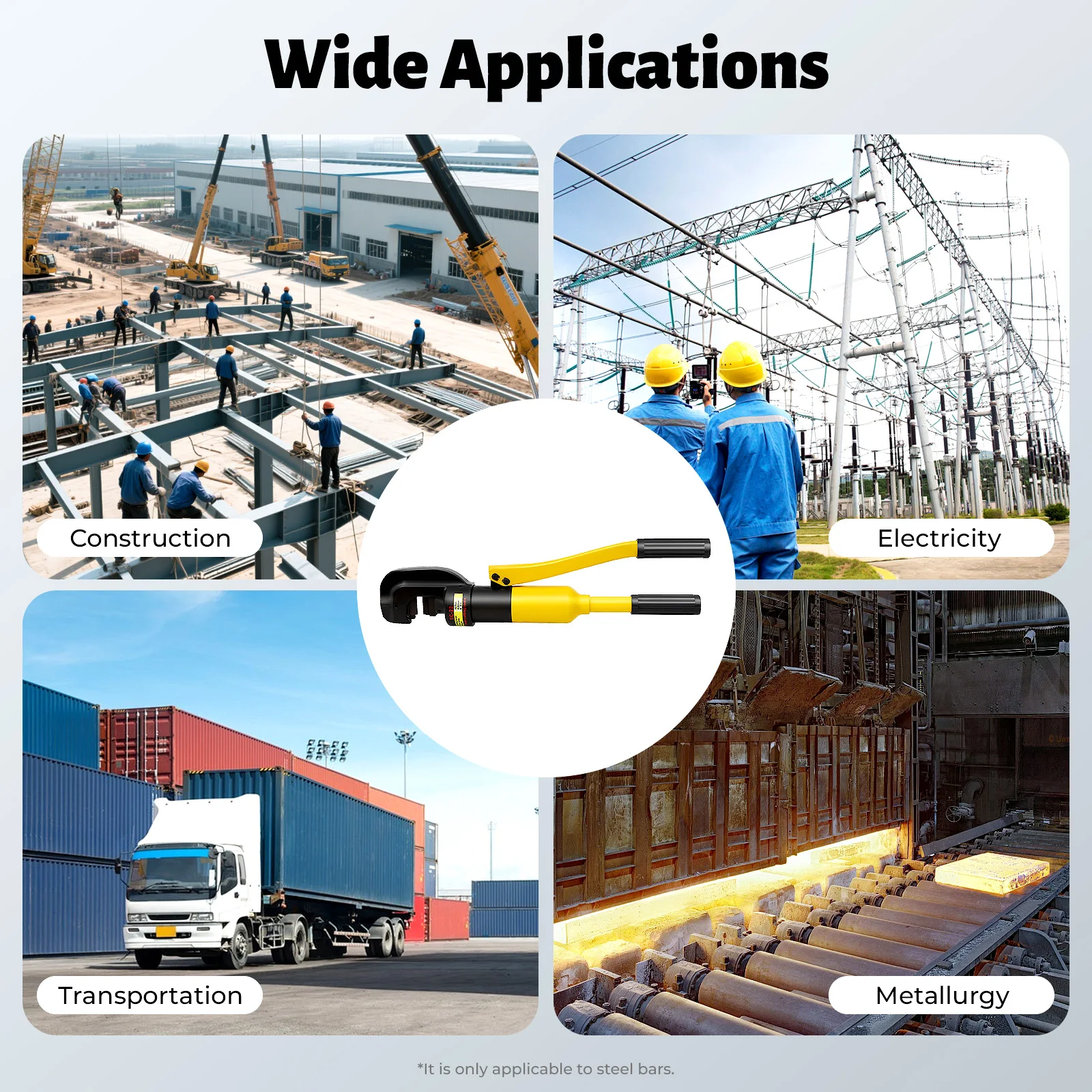Powerful Function: It is a manual hydraulic steel bar cutting tool that generates pressure through a28660-lbscylinder to cut steel bars.