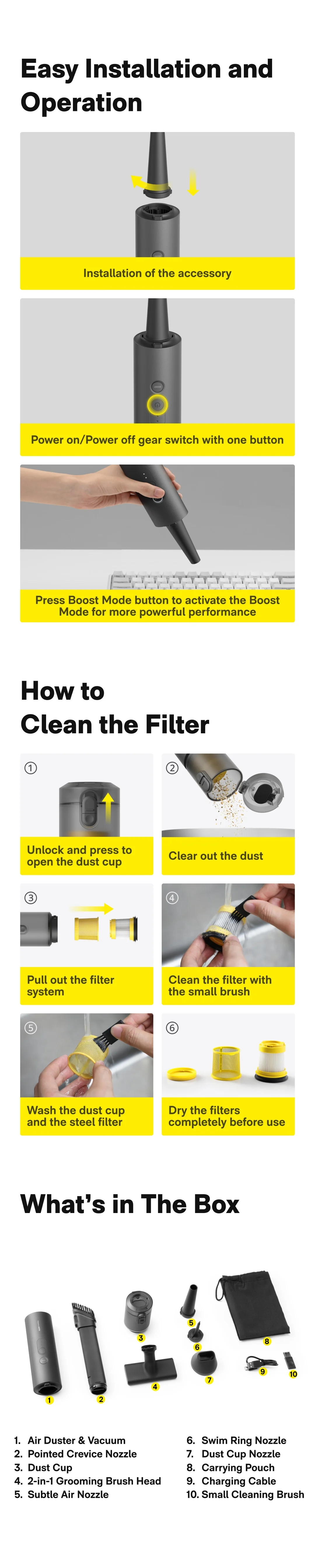 HOTO AutoCare Air Duster Vacuum 4-in-1 Portable 20000Pa Multifunctional Electric Compressed Dust Catcher Home Office Cleaning