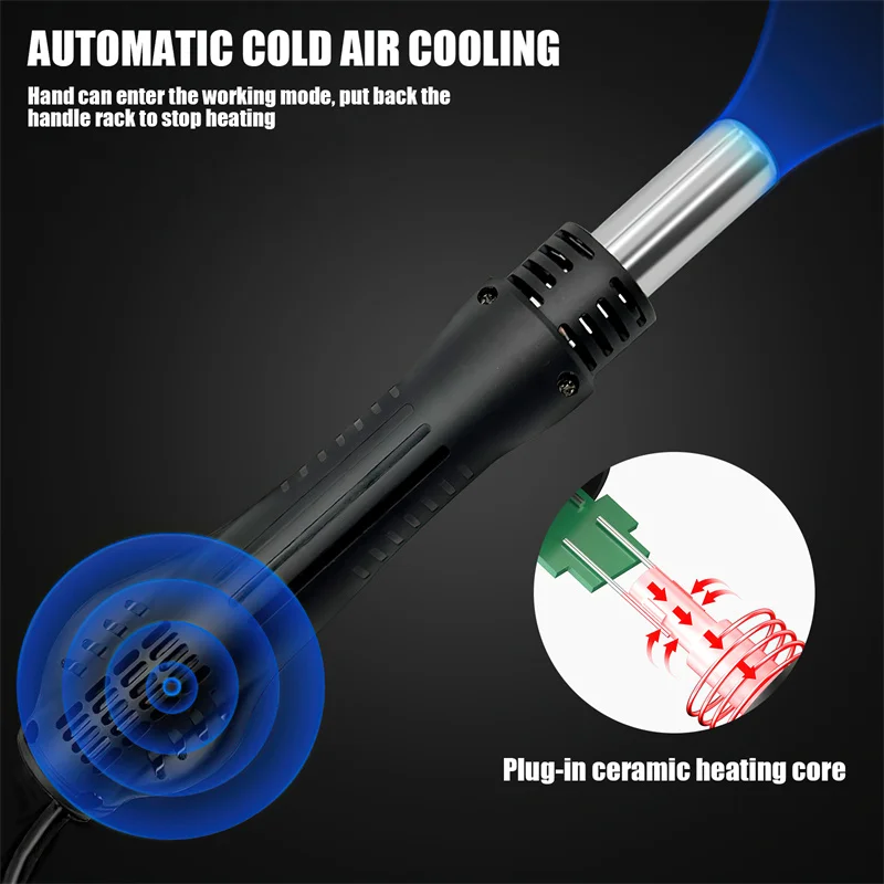 The automatic cooling function effectively extends the service life of the heater and protects the hot air gun.