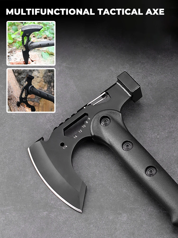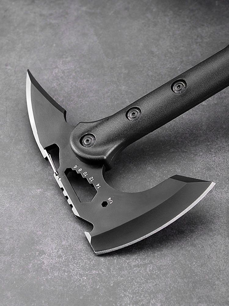 MULTI-PURPOSE TOOL: This survival hatchet is multifunctional, there are different sizes of hex nuts embedded which can be used for carrying out some daily maintenance tasks. But also for wood splitting, clearing paths in the forest or deep in your yard.