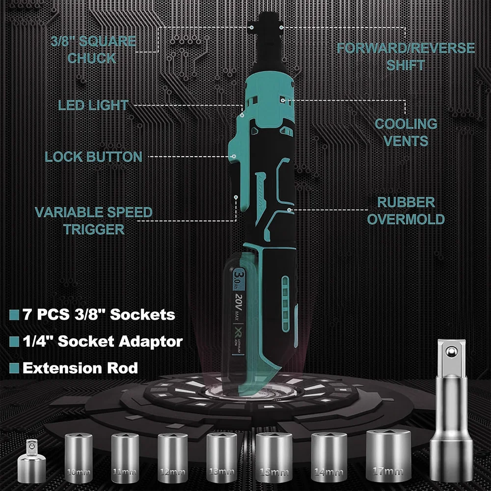 850N.M Cordless Ratchet Wrench 3/8'' Electric Rechargeable Screwdriver Removal Screw Nut Car Repair Tools For Makita 18V Battery