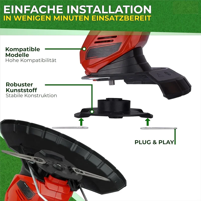4. the 1.5mm strong JayBlade replacement knives are made of stainless spring steel, are precisely laser made and no plastic knives! Let our mower blades for lawn trimmer audibly click on the cutter blade for 2 blades and the lawn trimmer is ready to use for weed removal on free green areas