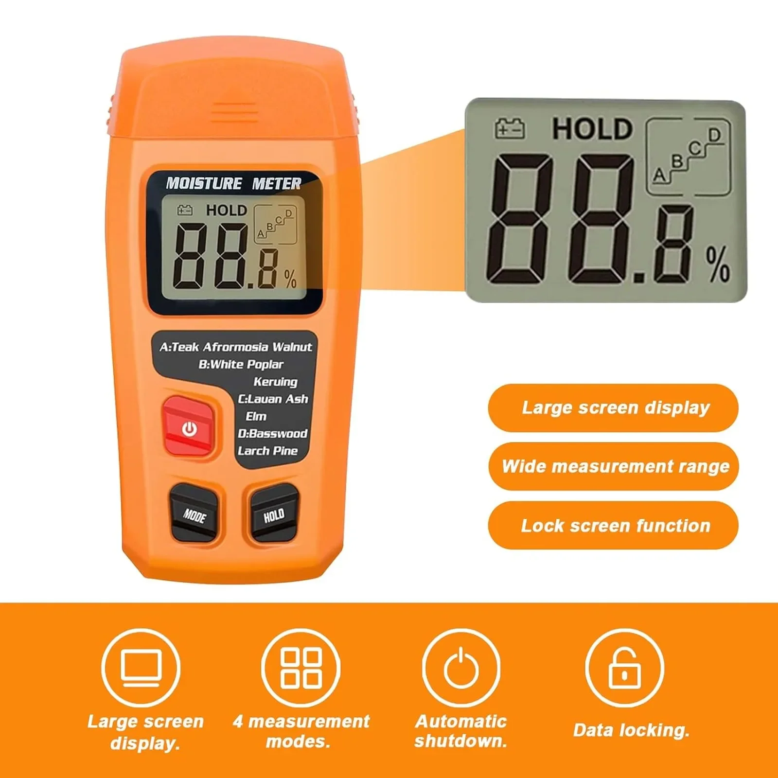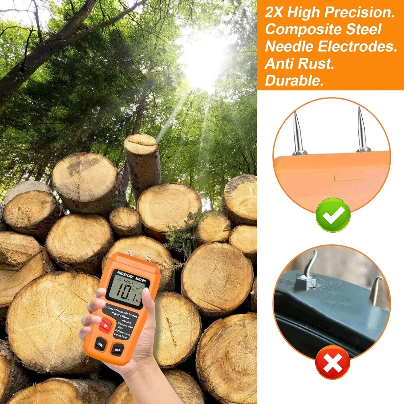 Digital Wood Moisture Meter 4 Modes Backlit LCD Spindle Leak Detector for Firewood Logs Walls Caravans Tool