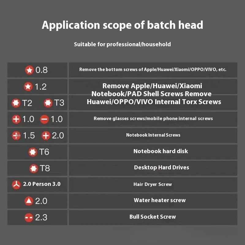 Material: S2 Alloy Steel Bits + Chrome Vanadium Steel Handles