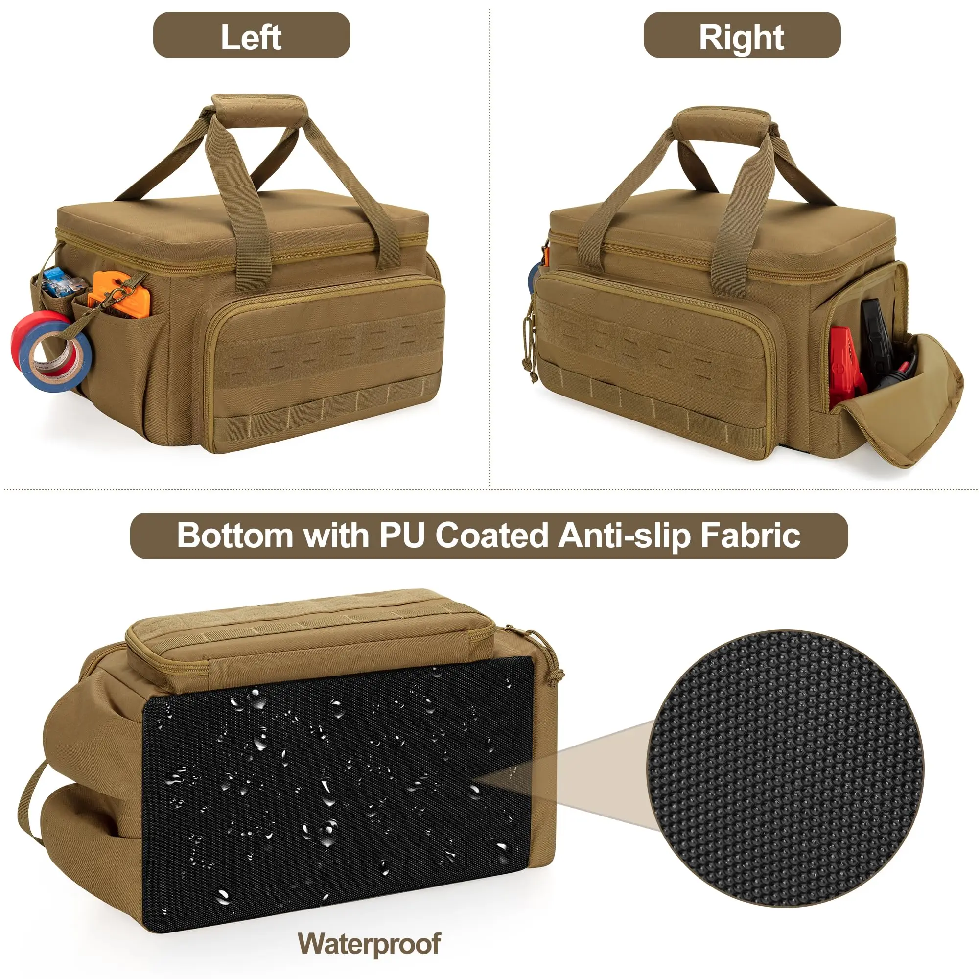 CONSIDERATE DESIGN - Padded handle to reduce hand pressure, large opening with two-way zipper for easy access to tools.Tactical styling with laser cut strips on the front for idea innovation.