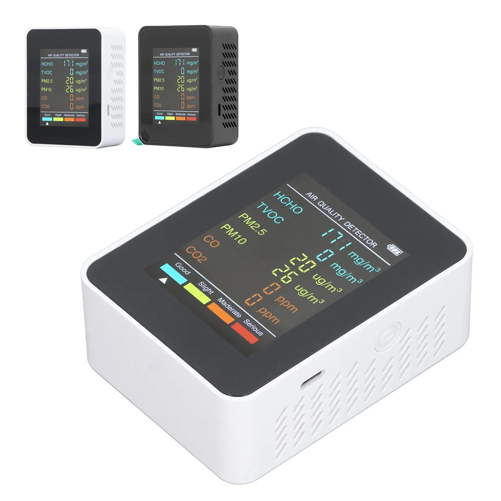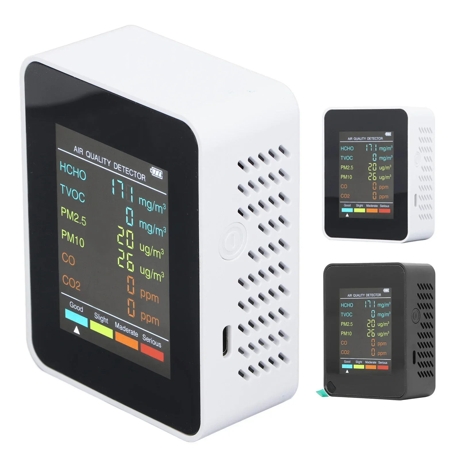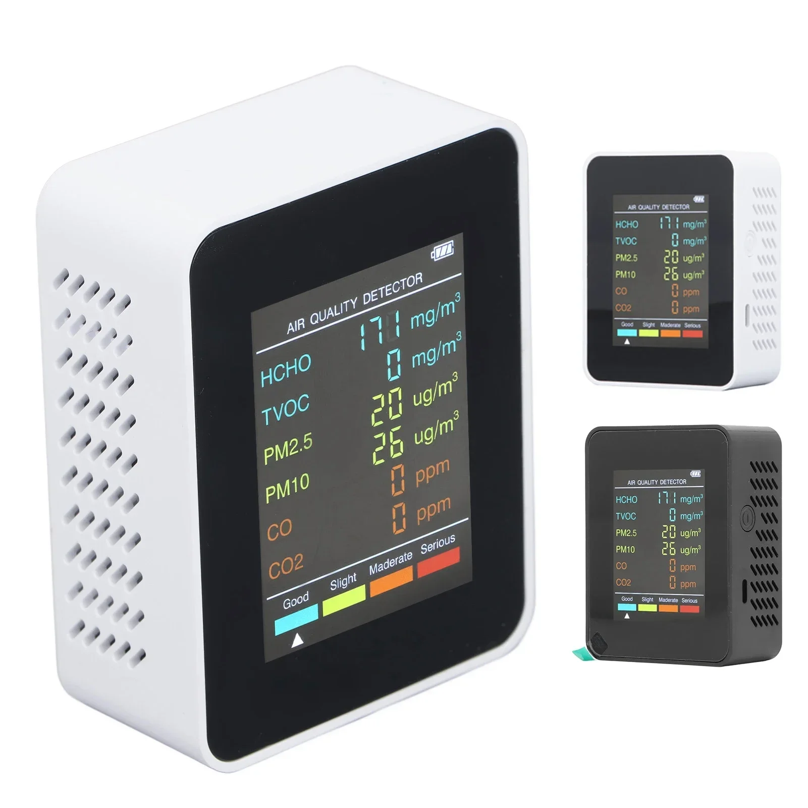 Air Quality Monitor Portable LCD Backlight Screen CO2 TVOC HCHO PM2.5 PM10 Detector with Alarm