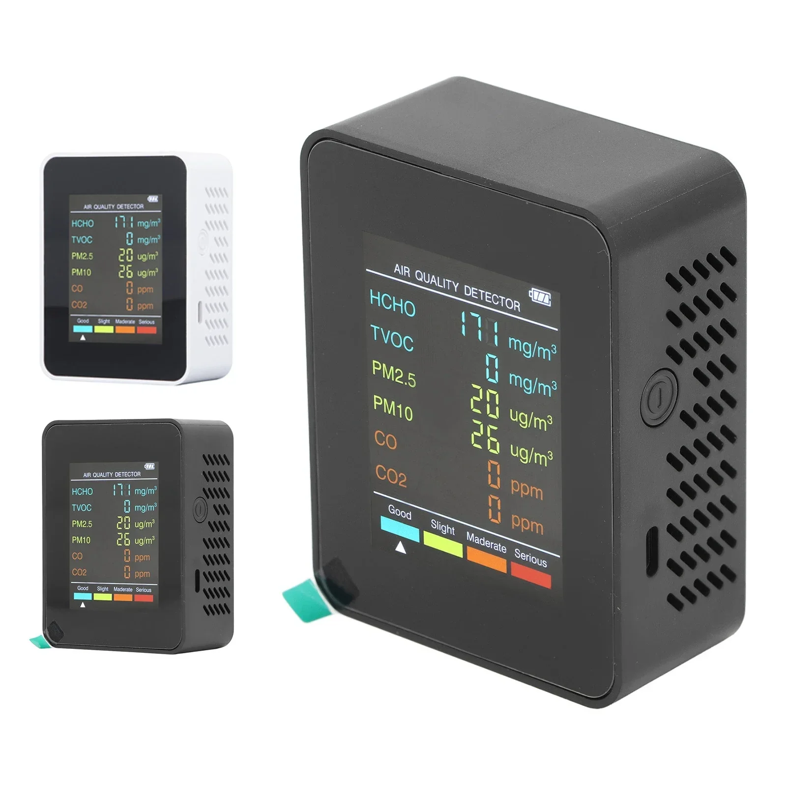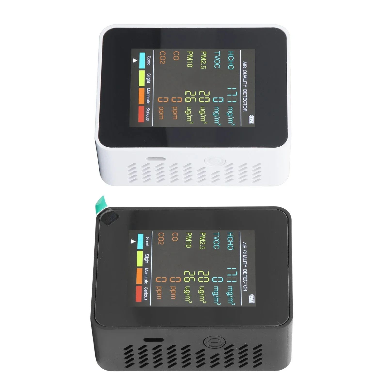 4. Excellent ABS Material: This air quality monitor is made of excellent ABS material, which is strong and wear resistant, not easy to be damaged and has a long service life.