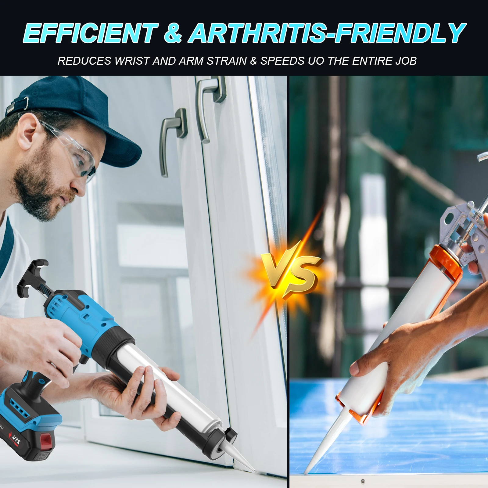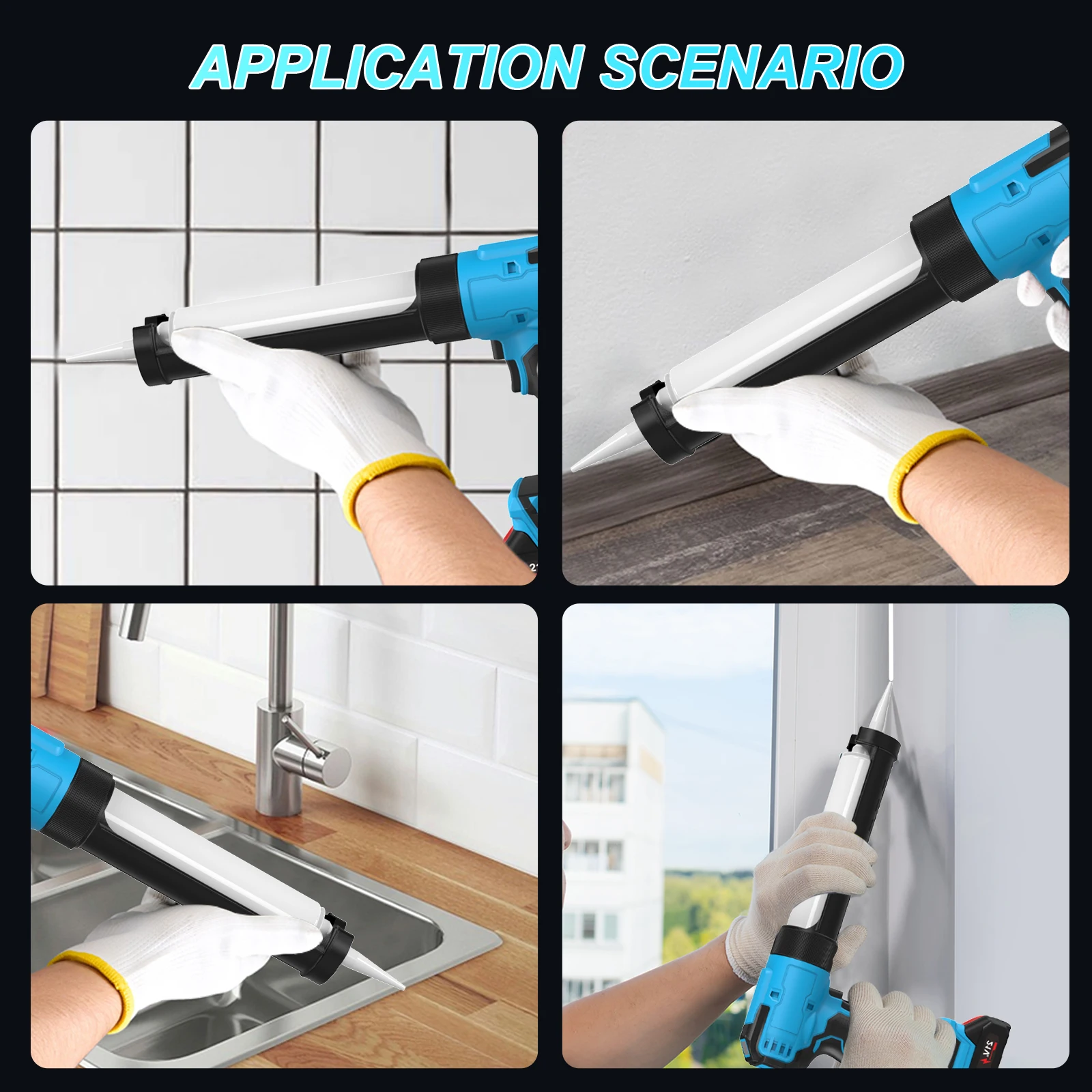 【Wide Use】It is suitable for applying glass adhesive, caulk, sealant and so on. This caulking gun is suitable for all common 10oz/300ml sealants. Widely used for filling, sealing and repairing narrow gaps in walls, windows, balcony doors and windows, showers/sinks, etc.