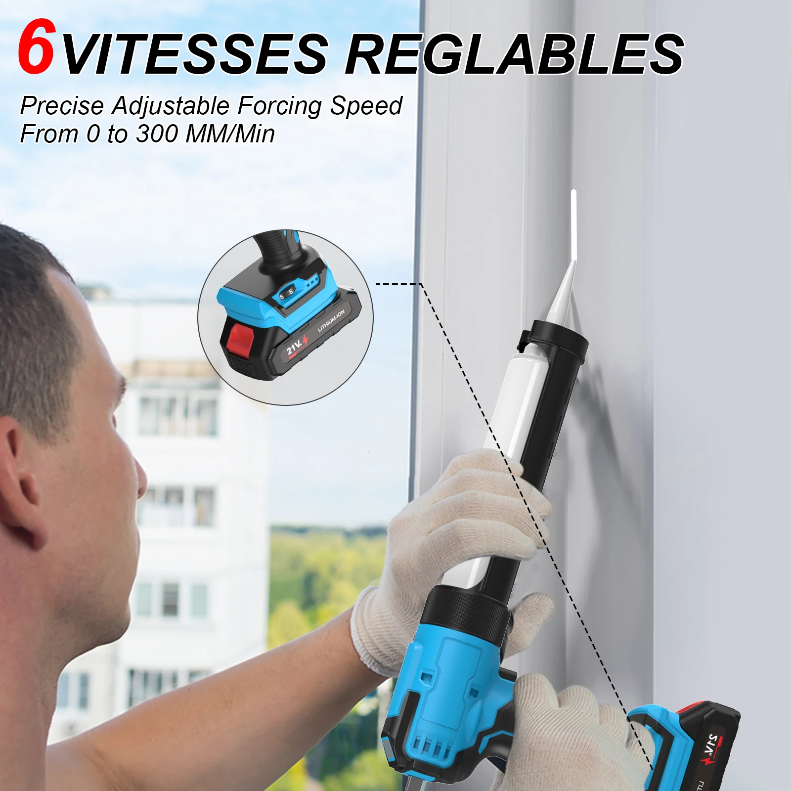 【6Position Adjustable Speed】The caulking gun has 6-position variable speed, with adjustable knob to meet different needs.