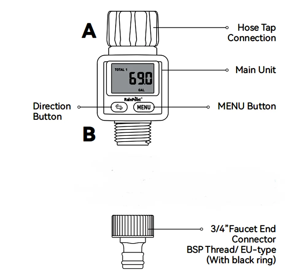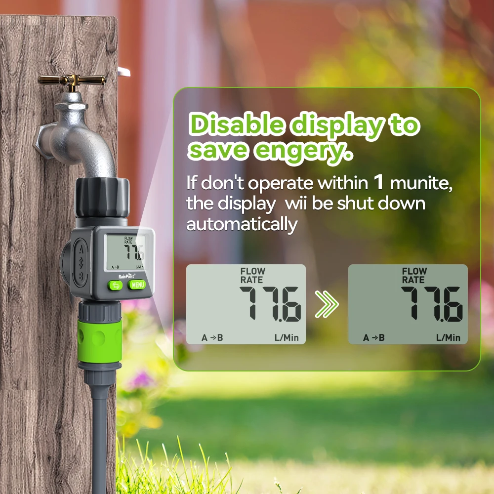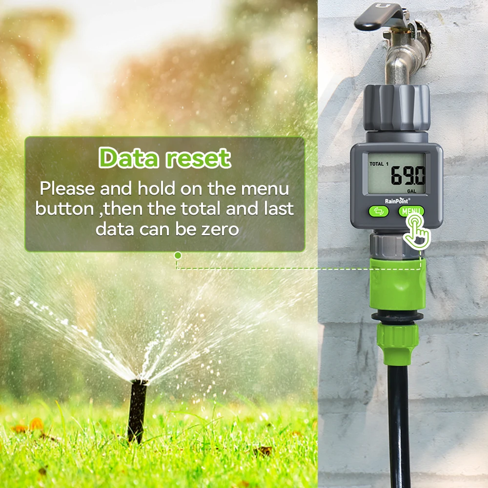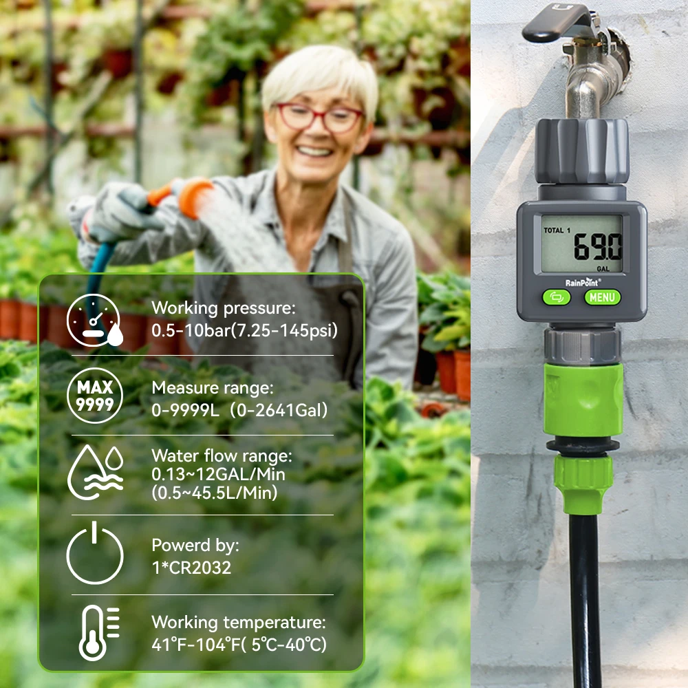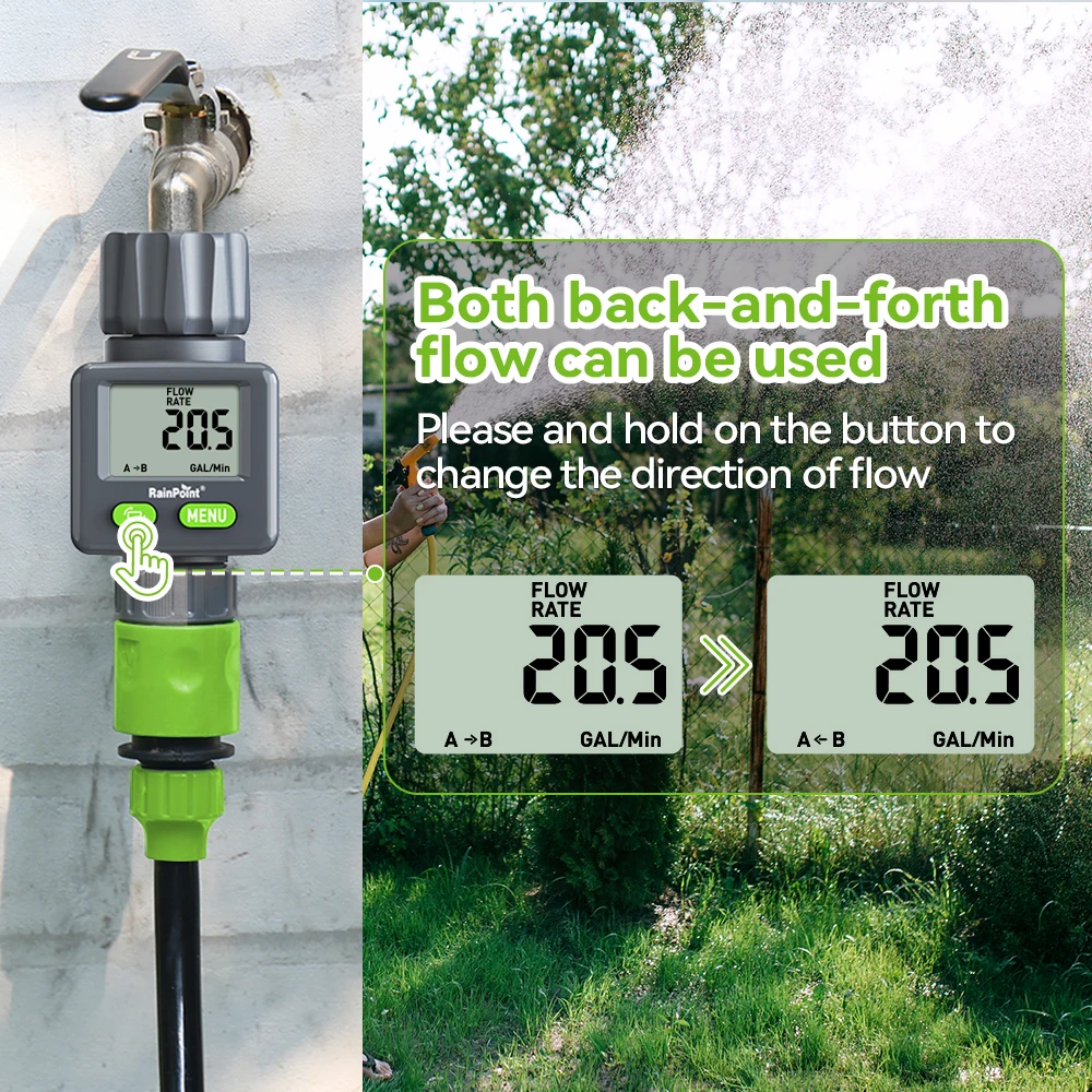 Rainpoint Digital Water Flow Meter RV Water Meter L/Gal For 3/4" Faucet Outdoor Garden Hose Watering Consumption Rate Irrigation