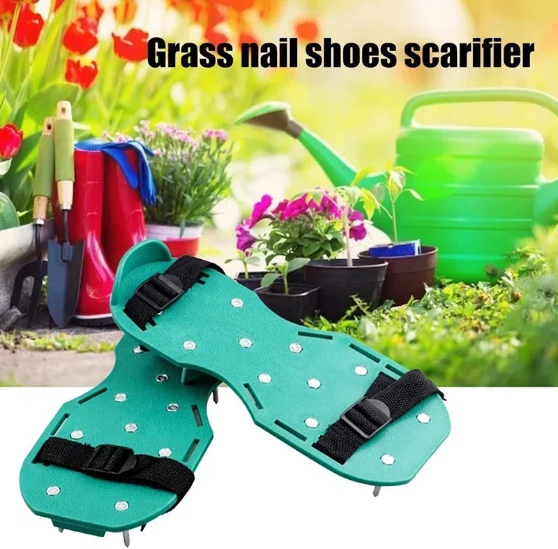 Garden Nail Shoes Grass Loose Soil Tool 5cm Long Nail Lawn Aerator Grass Spikes Shoes Self-Leveling Epoxy Yard Grass Cultivator
