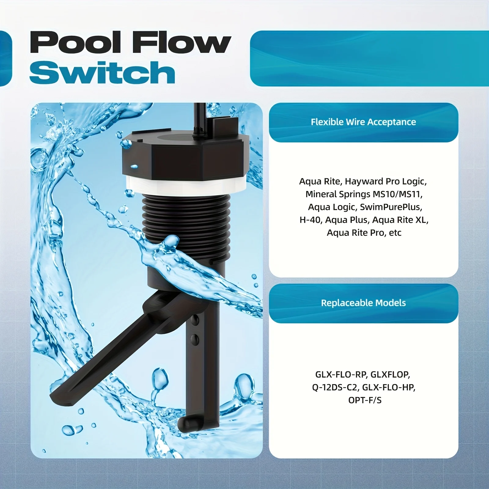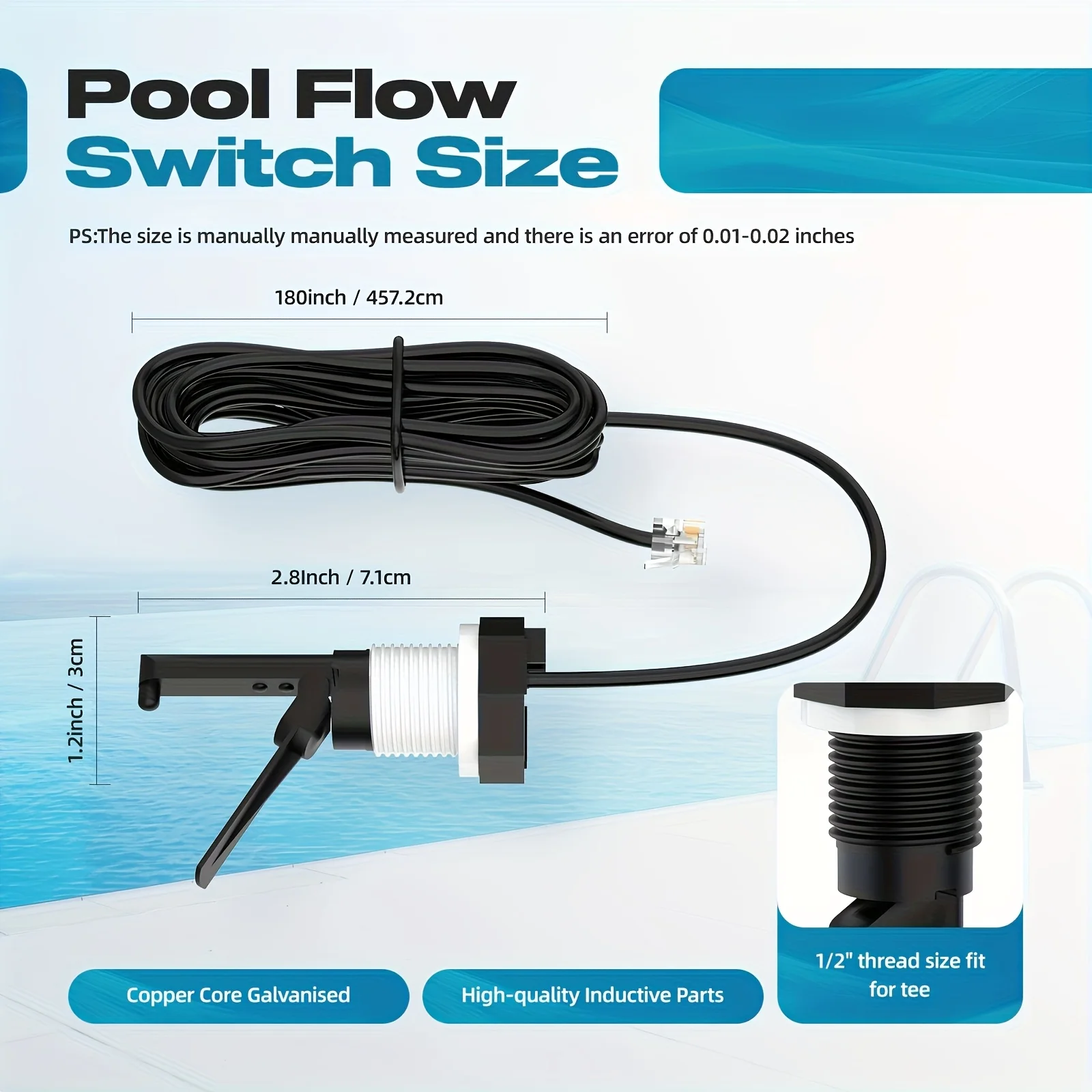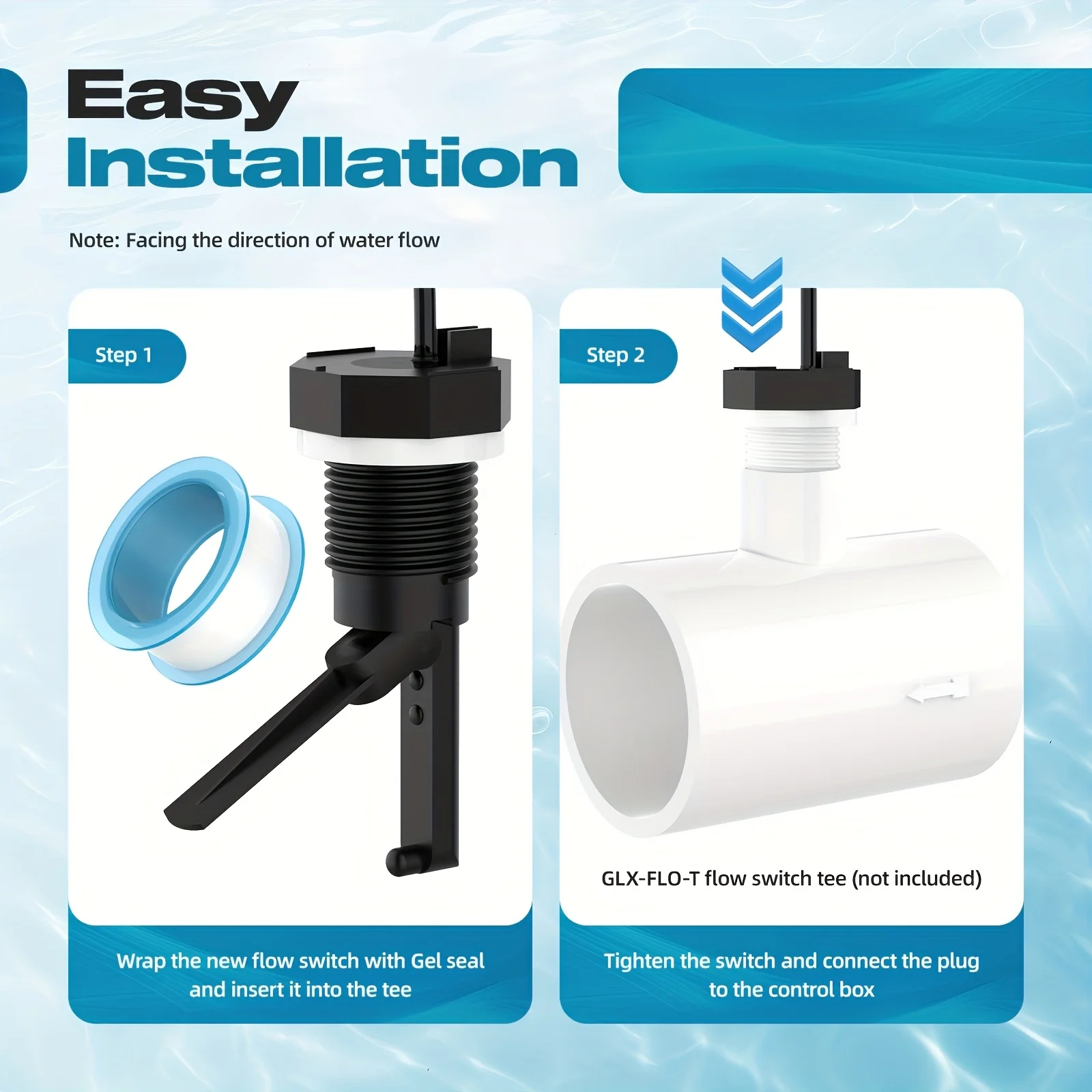 GLX-FLO-RP Flow Sensor,15 Foot Cable Pool Switch for Seawater Salt and Chloride Systems, Clearly Visible Water Flow,PVC Material