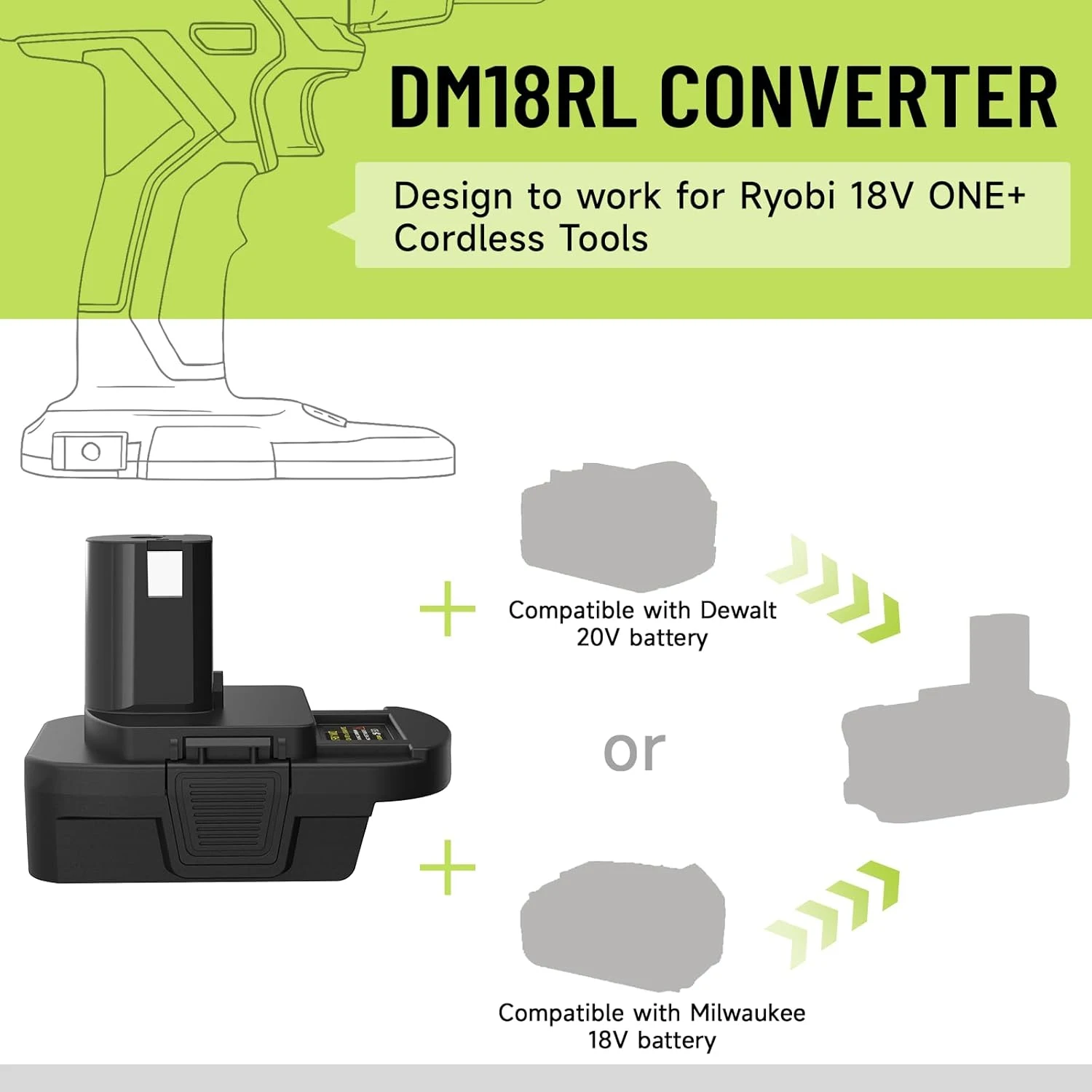 DM18RL Battery Adapter Converter for Dewalt&Milwaukee18V Li-Ion Battery Convert to for Ryobi 18V P108 Battery Tool Drill