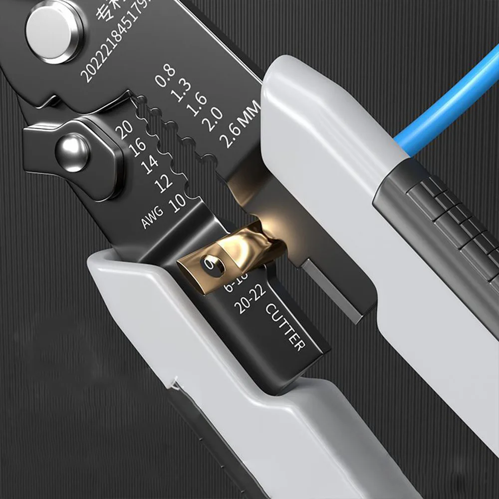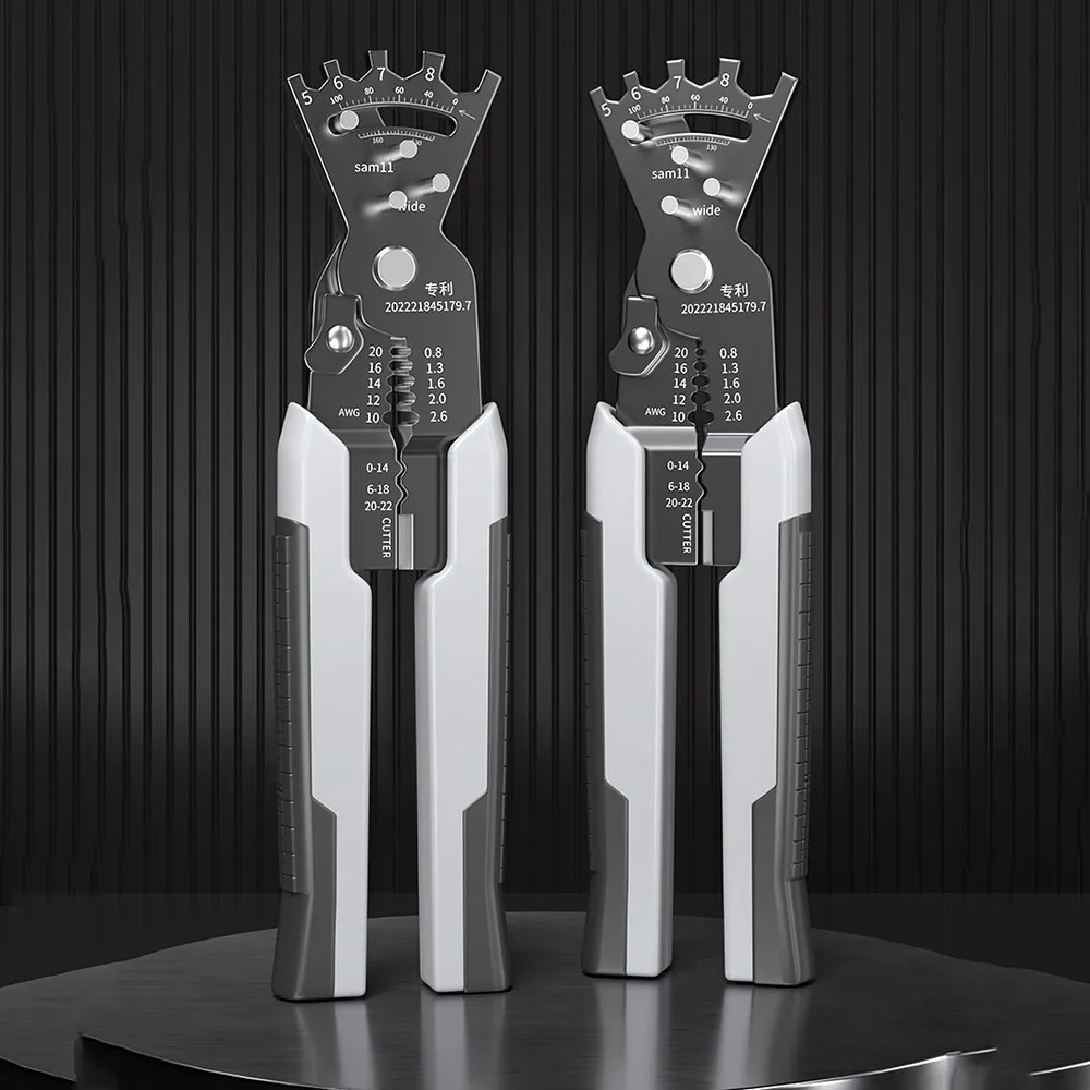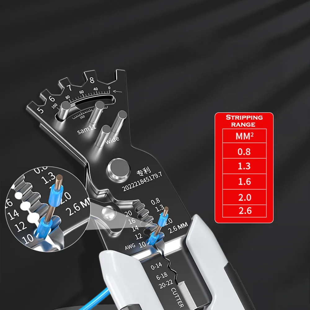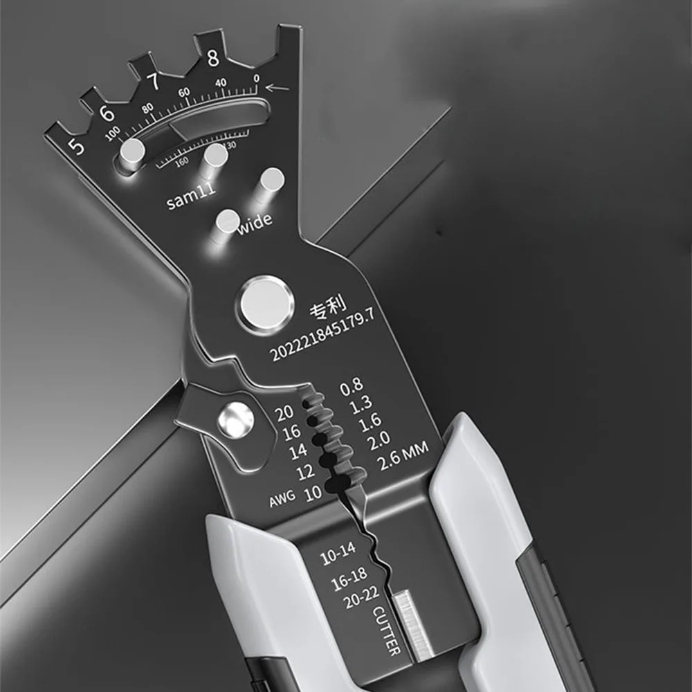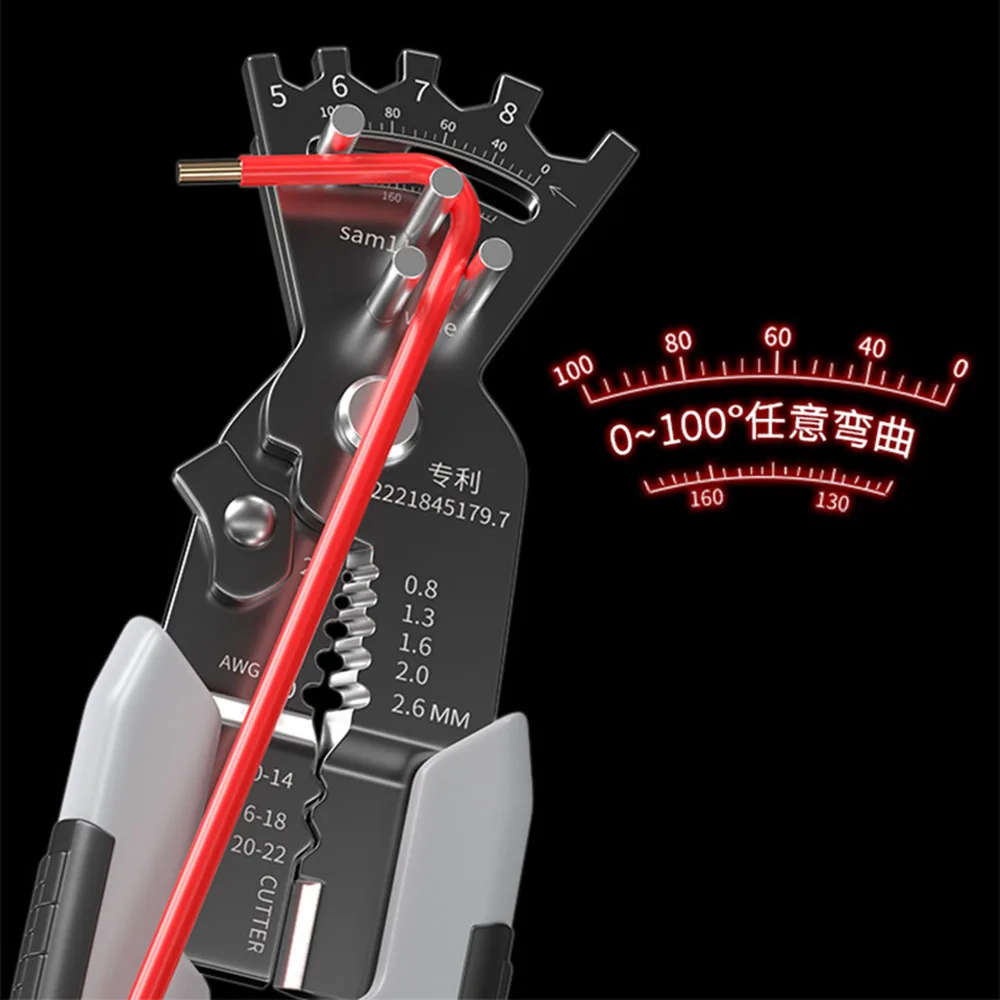 Material: chrome vanadium steelLength: 20cmBending angle: 0-100 °Stripping range: 0.8/1.3/1.6/2.0/2.6mm ²Crimping range: 10-14 16-18 20-22Package contains: 1 pcs pliers