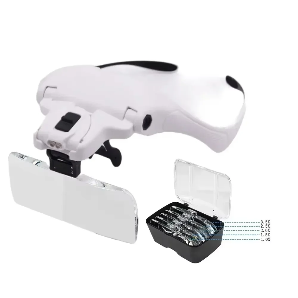 Diamond Painting Embroidery 1.0X 1.5X 2.0X 2.5X 3.5X Adjustable 5 Lens Loupe LED Light Headband Magnifier Glass With Lamp