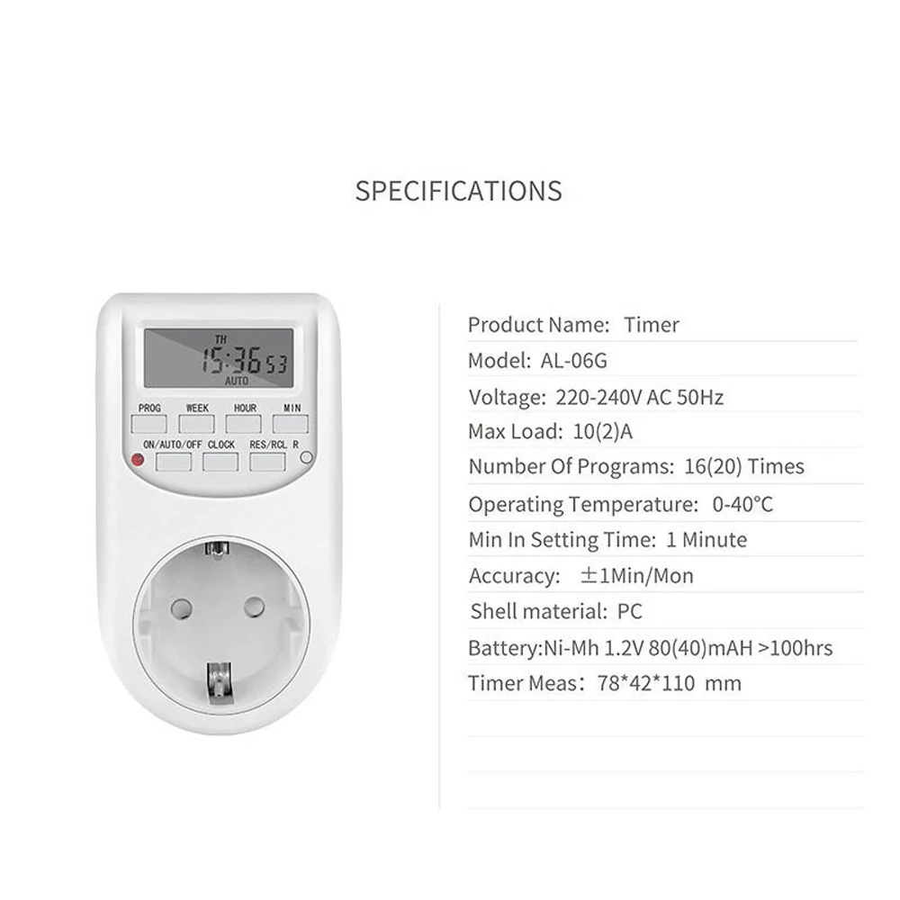 1pc EU Plug Timer Switch Digital Power Socket Energy Saving Adjustable Kitchen Timer Outlet Week Hour Programmable Timing Socket