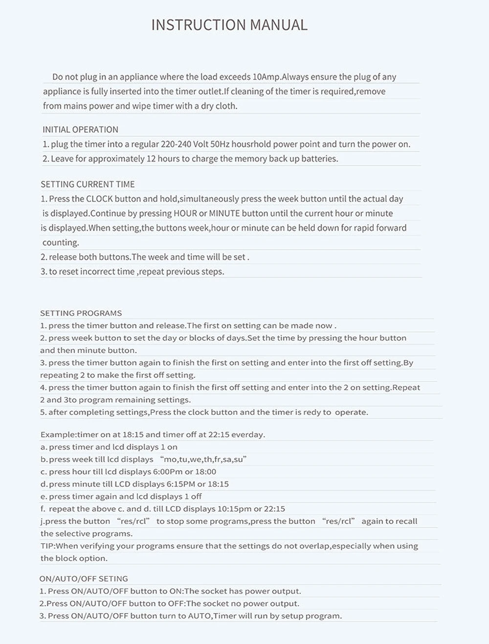 3 : Minimum setting time of 1 minute , maximum setting time of a week.