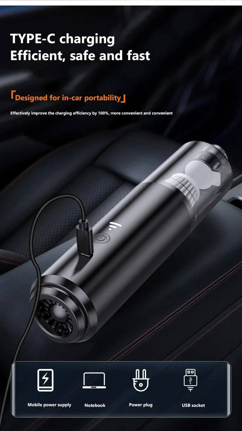 1.Strong suction power:Hurricane suction 3 min clean the entire vehicle